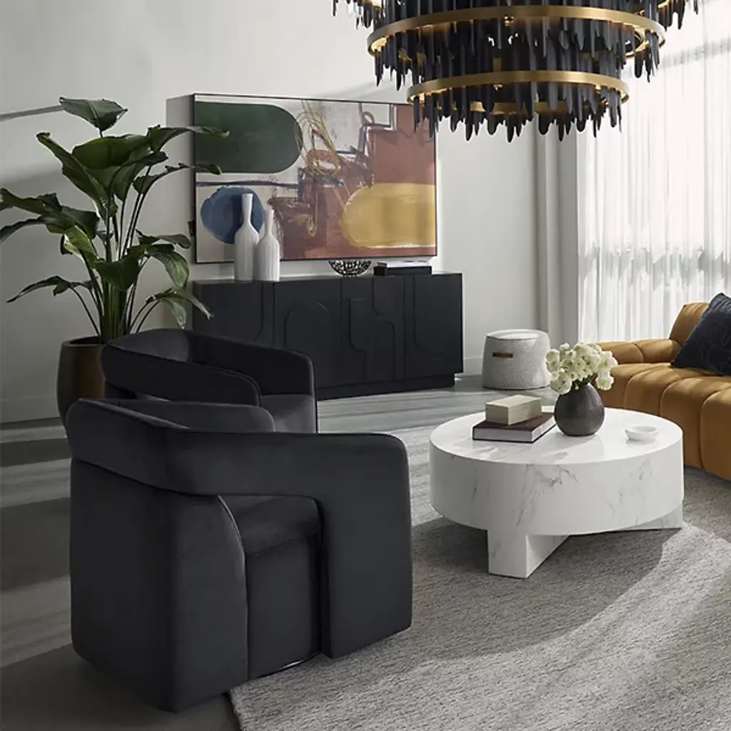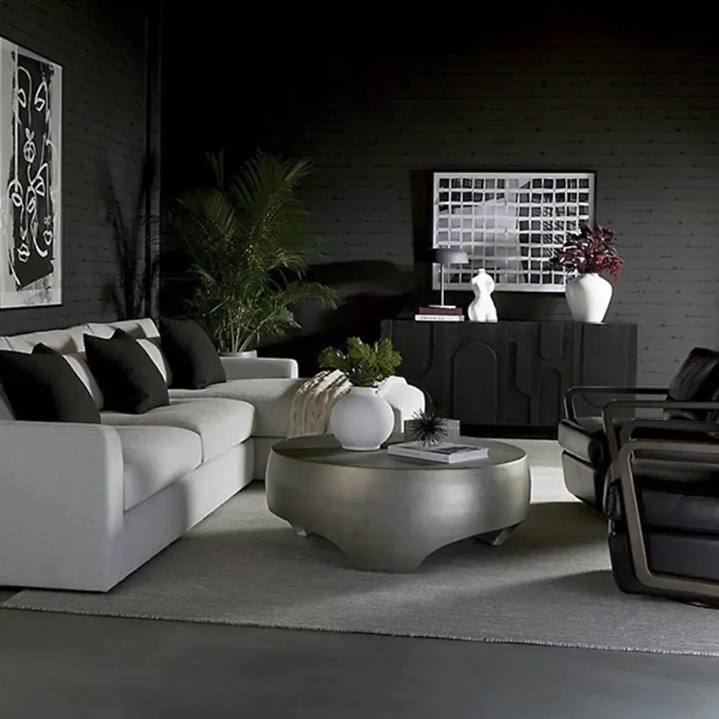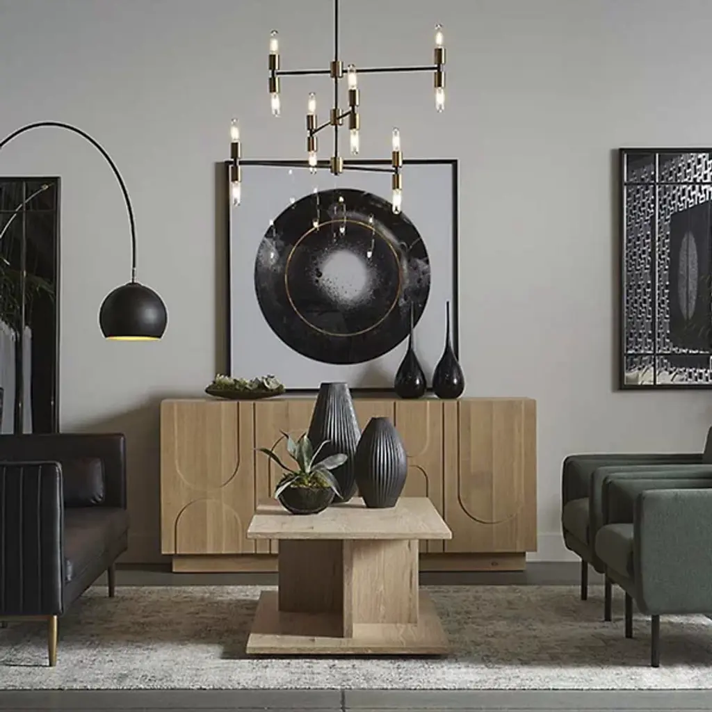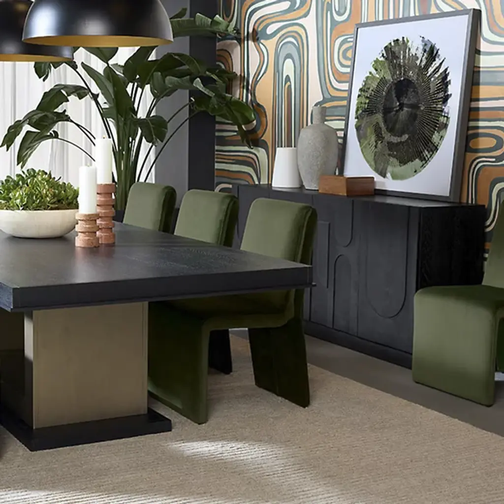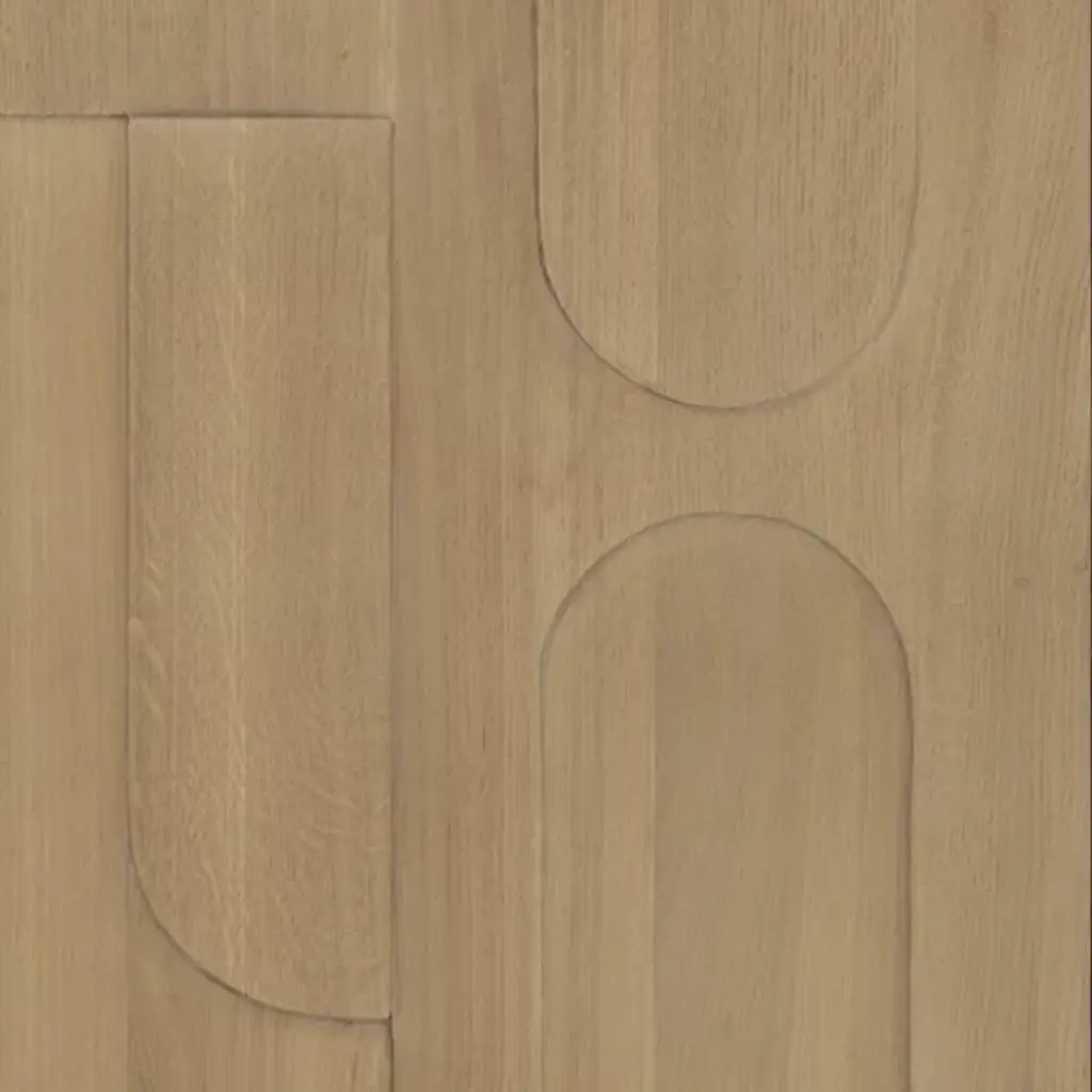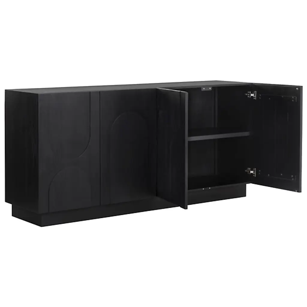 The Cove Sideboard from Sunpan reimagines Scandinavian minimalism through artisanal Indian craftsmanship. Each piece is handcrafted from solid oak wood, displaying unique grain patterns and natural character marks that celebrate its organic beauty. The rustic finish complements four soft-close cabinets with slight finger grooves, while the chamfered back adds appealing interest. The blocky yet refined construction offers a testament to refined storage where mid-century aesthetics meet contemporary function.