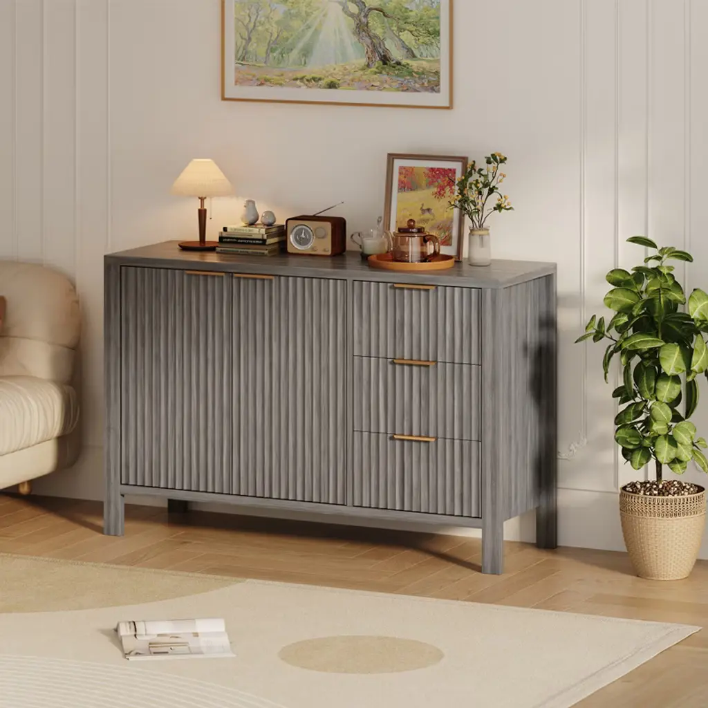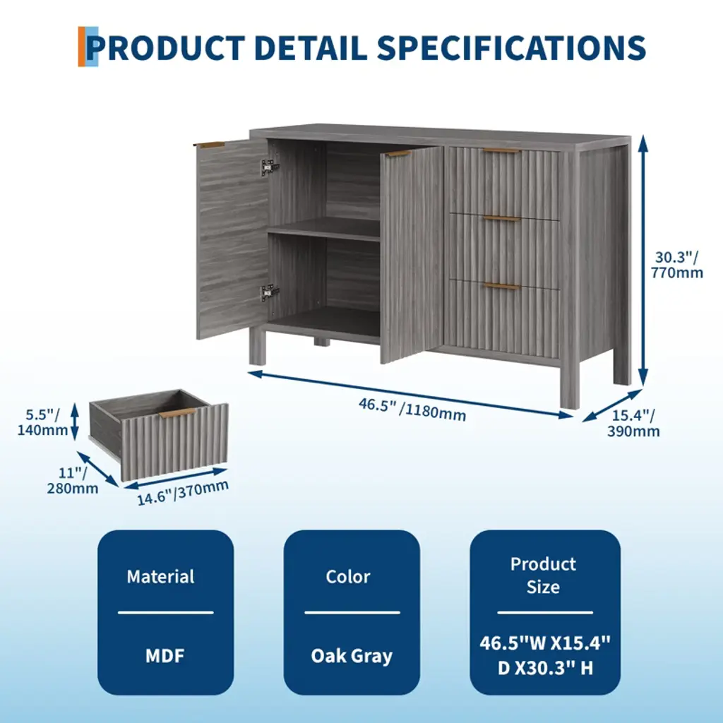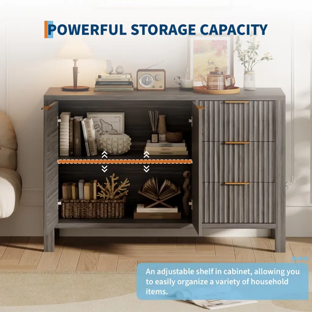 Cozony 46.5" Fluted Sideboard Buffet Cabinet With 3 Drawers, 2 Doors & Adjustable Shelf, Coffee Bar Storage