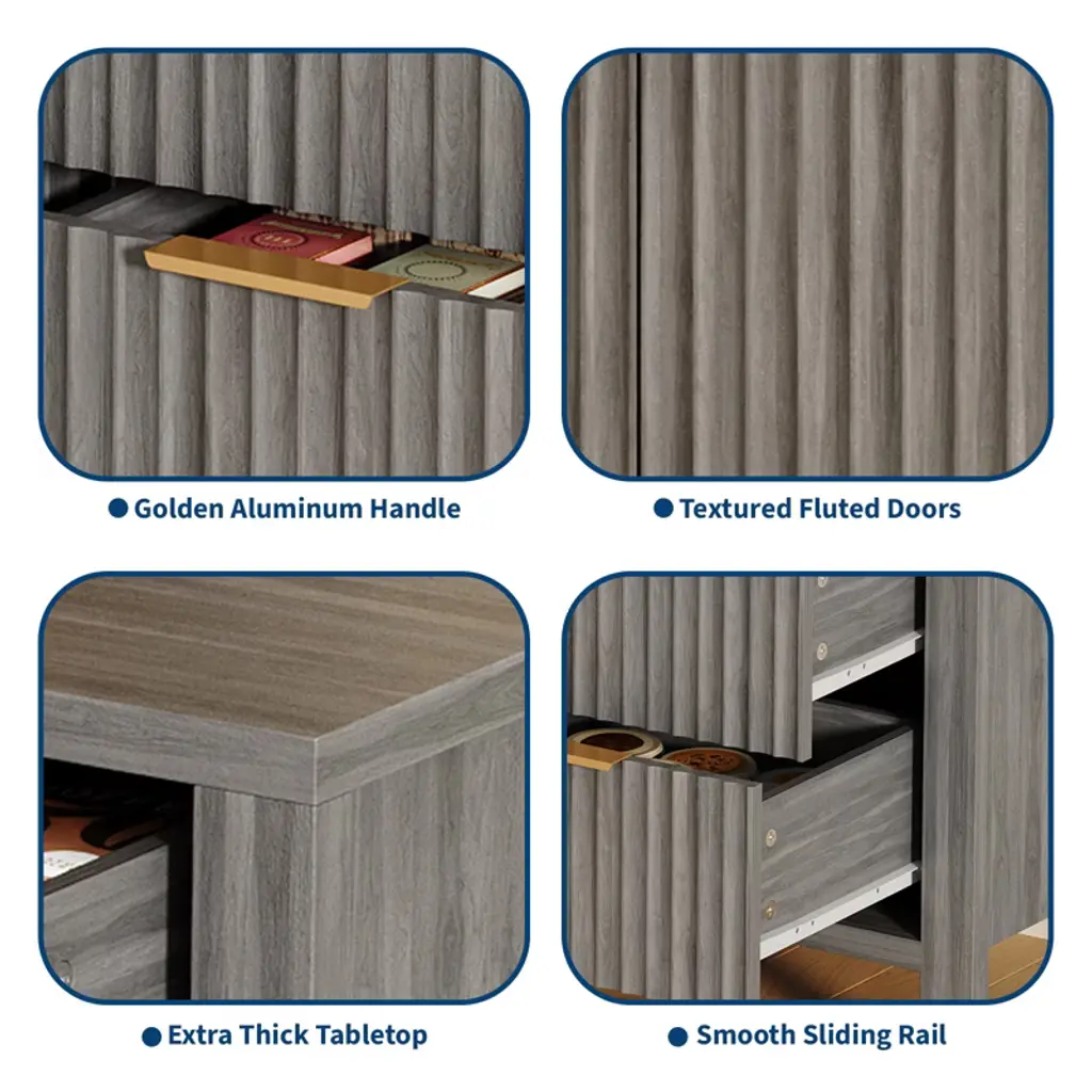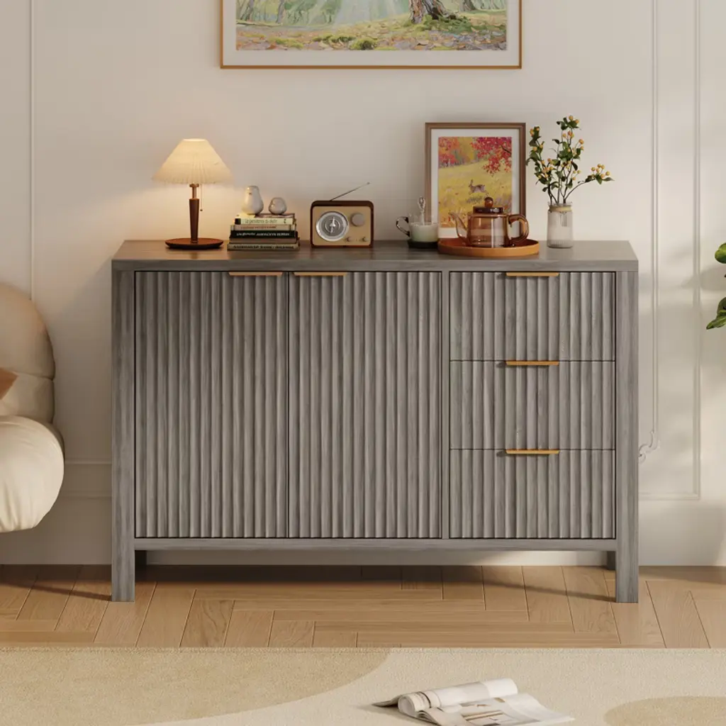 COZONY’s 46.5" fluted sideboard buffet cabinet elegantly combines mid-century modern design with versatile functionality. Featuring 3 smooth drawers, 2 spacious doors, and an adjustable interior shelf, this cabinet offers ample storage for kitchenware, dining essentials, or coffee bar accessories. The fluted detailing adds a touch of sophistication, while the durable construction ensures longevity. Perfect for living rooms, entryways, or dining areas, it seamlessly blends style and organization.
