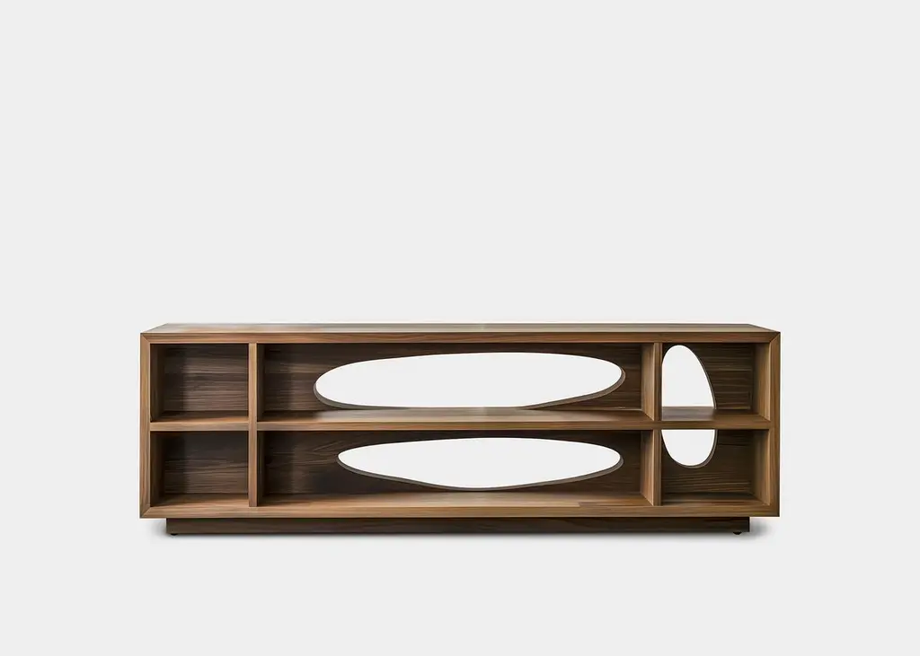 Credenza 4, Unique Finish, Joel Escalona's Sereno Design, Sculptural Detail—Sereno CollectionDesign by Joel Escalona for NONOWhen practicality becomes art, the result is the Sereno Collection by Joel Escalona for NONO. This collection redefines tranquility through exquisite credenzas and sideboards that stand alone in their beauty, embodying a serene simplicity that everyone can feel.The Sereno Collection celebrates minimalism with pieces that don’t need additional decoration to make a statement. Each credenza and sideboard is adorned with unique wooden sculptures, reminiscent of a tranquil pebble, thoughtfully placed to enhance its elegance. These pieces are crafted from solid wood, adding character to each design. Standard models use red oak, but customization with various woods and finishes like walnut, teak, and burnt oak is available to perfectly suit your style and space.Founded in 2011 by Joel Escalona, NONO has over a decade of experience producing high-quality interior furnishings. Joel’s work transcends categorization, blending creativity, productivity, and introspection. His multifaceted approach, encompassing drawing and sculpture, infuses his designs with lyricism, humor, and poetry.NONO's philosophy centers on transforming everyday beauty into extraordinary art forms, seamlessly blending functionality and aesthetics. Each Sereno credenza and sideboard exemplifies this philosophy, offering both beauty and practicality. When you choose a piece from the Sereno Collection, you’re not just acquiring furniture; you’re bringing a piece of art into your home.Each piece in the Sereno Collection makes you feel serene and tranquil, embodying a minimalist elegance that doesn’t require additional ornamentation. The beauty of these designs is that they are complete in themselves. You don't need to add anything else to the compartments or surfaces; they stand alone, transforming any living room or interior project with their quiet sophistication.Experience the serene elegance of the Sereno Collection by Joel Escalona for NONO, where every piece speaks softly yet powerfully, transforming your space with its quiet beauty.———Some details to consider when placing an order with us:• Catalog images are digitally generated. Actual products may slightly vary in texture, grain, and final finish due to natural material differences. Despite these variations, our expertise ensures each piece maintains high quality and matches the intended design.• All of our products are made to order, and the lead time for standard products is estimated to be 9 to 12 weeks, plus shipping time. However, special pieces or sculptures may require a longer lead time.• We offer customization in dimensions and finish for all of our furniture pieces, which may result in additional charges.• We only facilitate freight services by a third party. The client is solely responsible for any associated import/export taxes, as well as any necessary customs paperwork.• We are not responsible for any damages that may occur during shipping or for any customs-related delays.