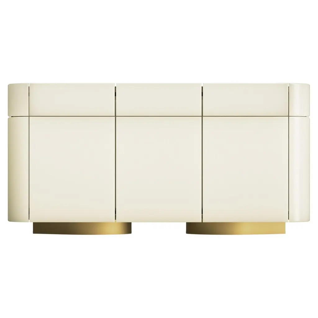 Credenza, Shiny Lacquered Wood With Textured Finish Details, Pearl Color
