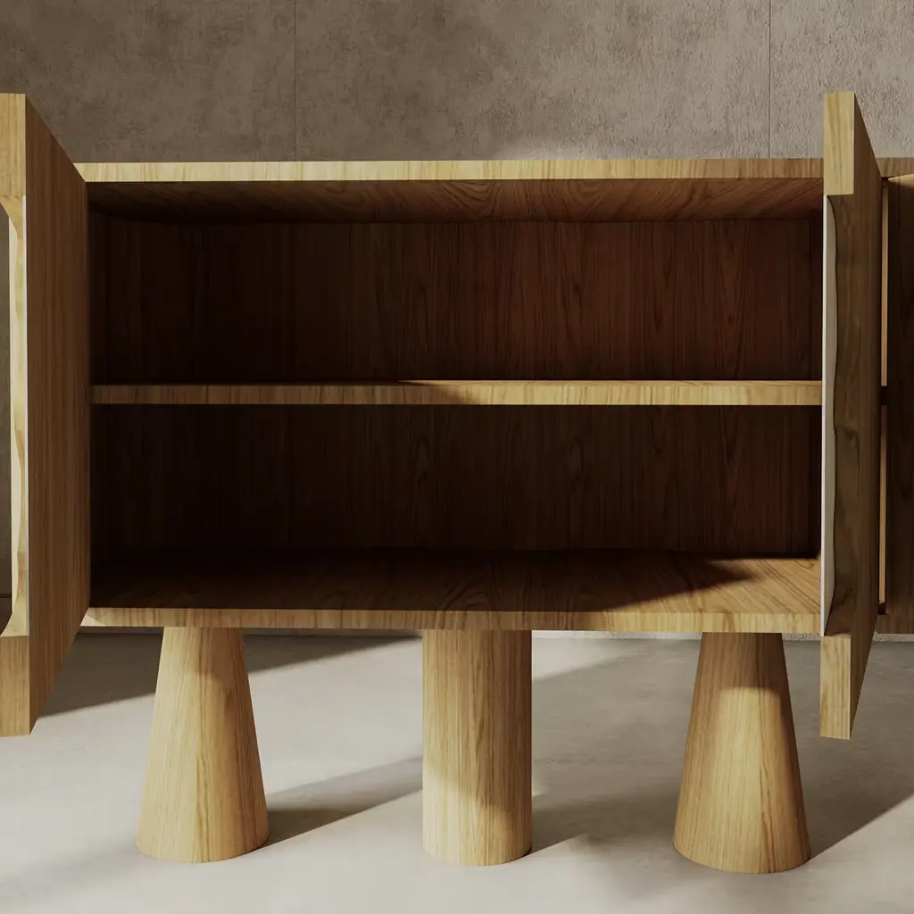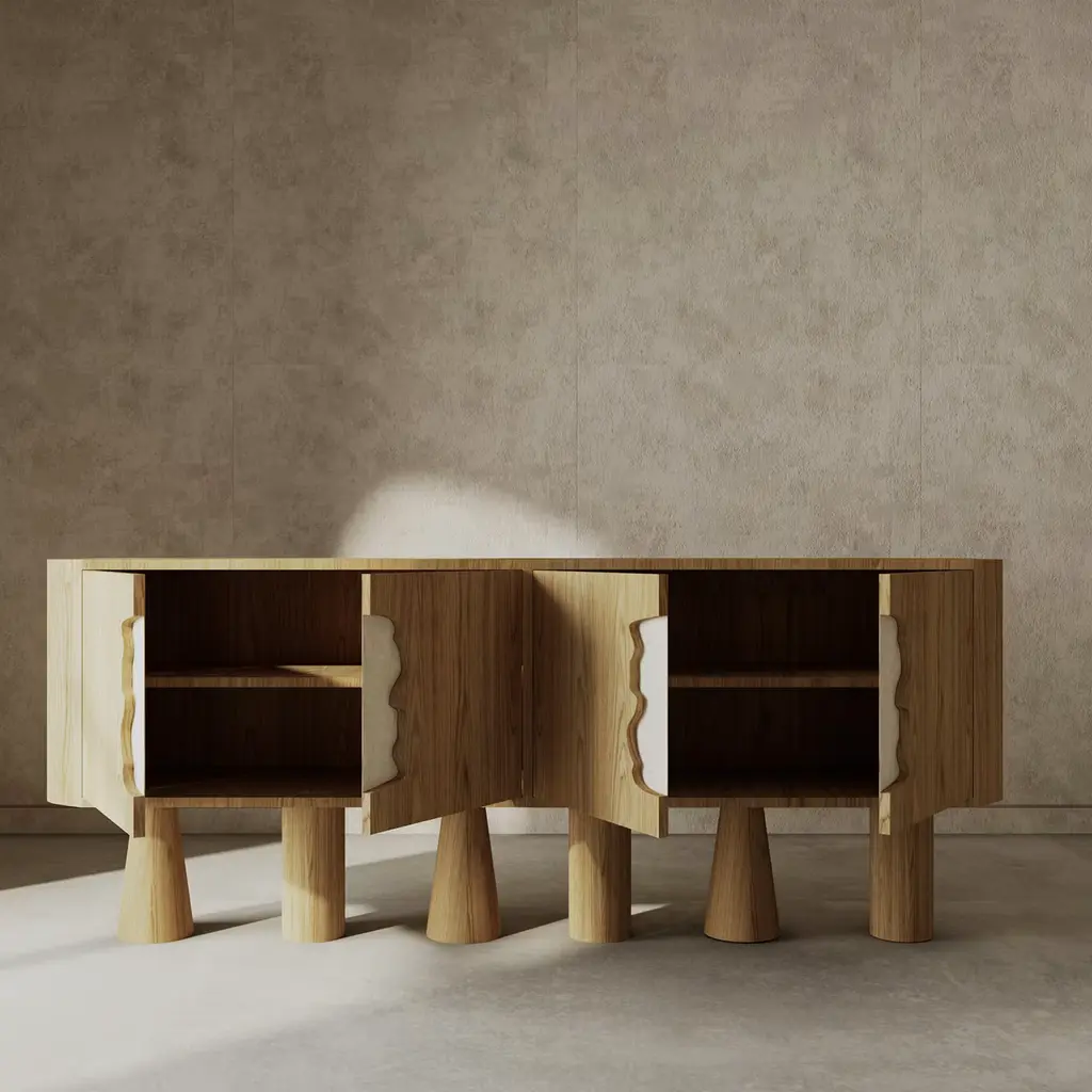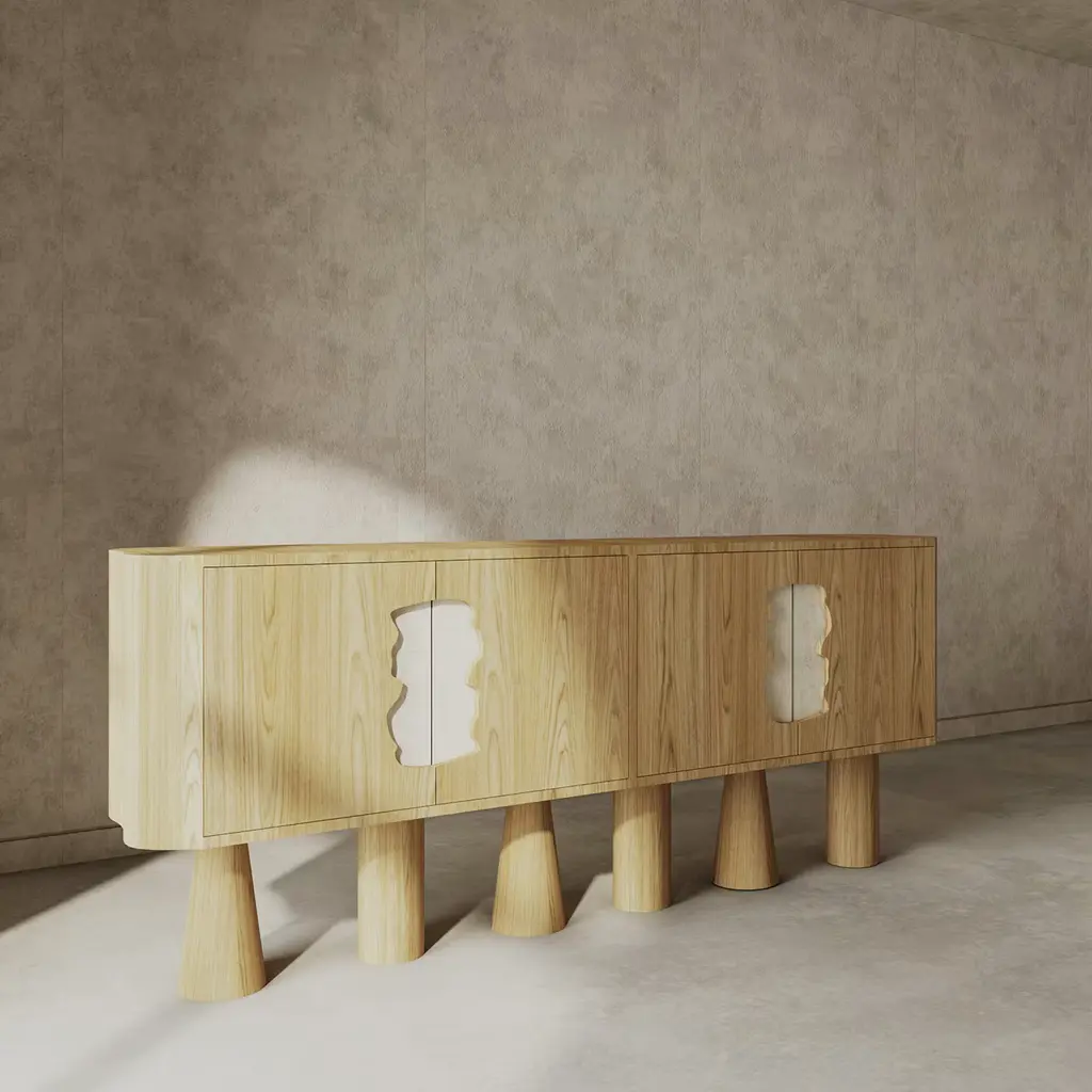 The Creta Sideboard embodies a harmonious blend of elegance and functionality, making it an exquisite addition to any living space. Crafted with a sturdy oak structure and adorned with Roman travertine inlays, this piece showcases the natural beauty of high-quality materials, reflecting a commitment to craftsmanship. With its unique design, it serves not only as a storage solution but also as a statement piece that enhances the aesthetic appeal of modern interiors while honoring traditional design elements. Perfectly suited for those who value style and character in home decor, this sideboard is an essential component for a sophisticated living environment.