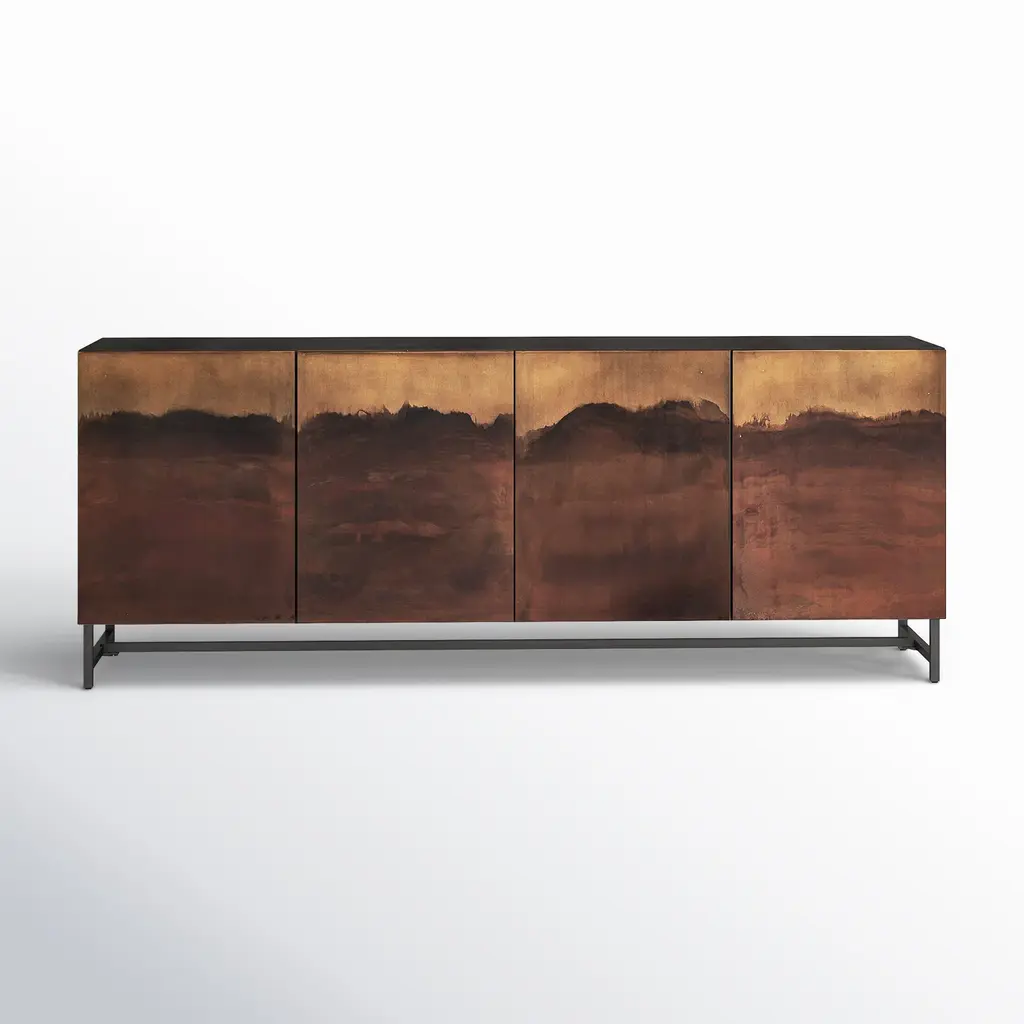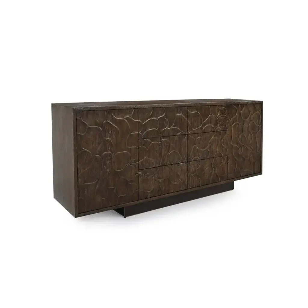 Make a splash with the Karlson Credenza, which is made of solid oak that is covered with natural vellum veneer on the front and a caviar black finish on the frame. Though this is a work or art worthy of Pollack in one of his monochromatic moods, it’s a worker-bee with its soft-close hinges, eight adjustable shelves, adjustable glides, center foot with a leveler, cord management, and anti-tip kit. We offer a number of pieces in our Karlson family of products. Finish: Stained Vellum/Caviar Black Materials: Oak Solids & Veneers/Natural Vellum Overall: 36"h x 80"w x 20"d Weight: 340 lb Hardware: Grey Push to Open Doors: 4 Door Detail: Integrated Door Pull Hinges: Adjustable Soft Close Adjustable Shelves: 8 Floor Protection: Adjustable Glides Cord Management: 4 Manufacturer: Currey and Company Complimentary white glove shipping & assembly in the U.S.