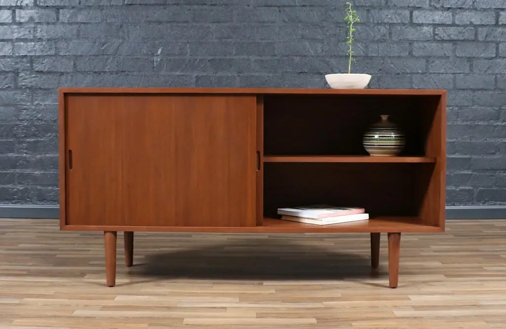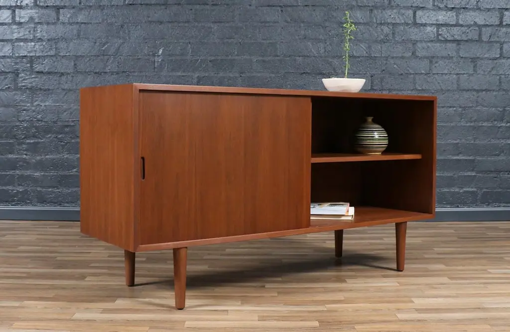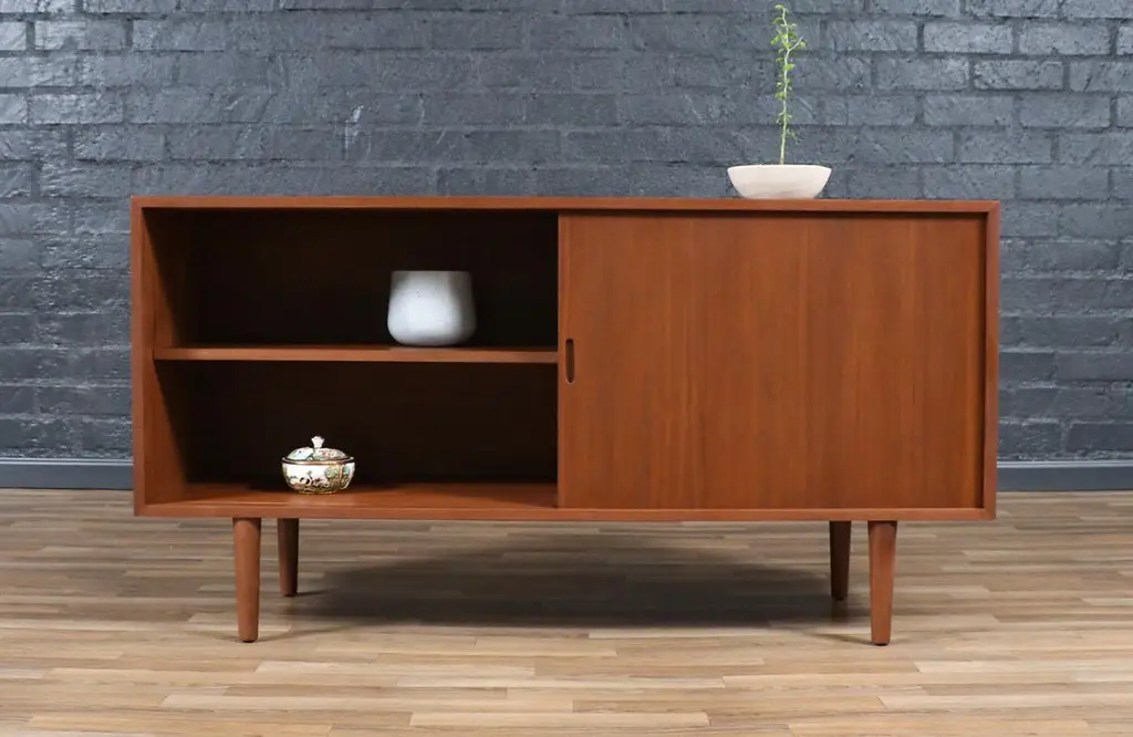 Custom Made Walnut Credenza W/ Sliding Doors By Danish Modern La