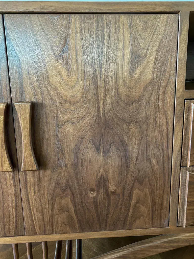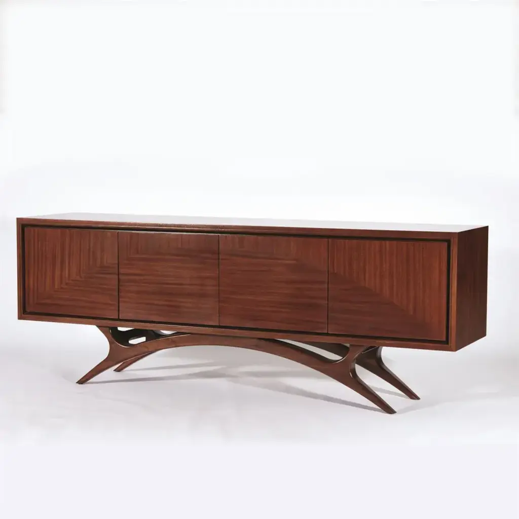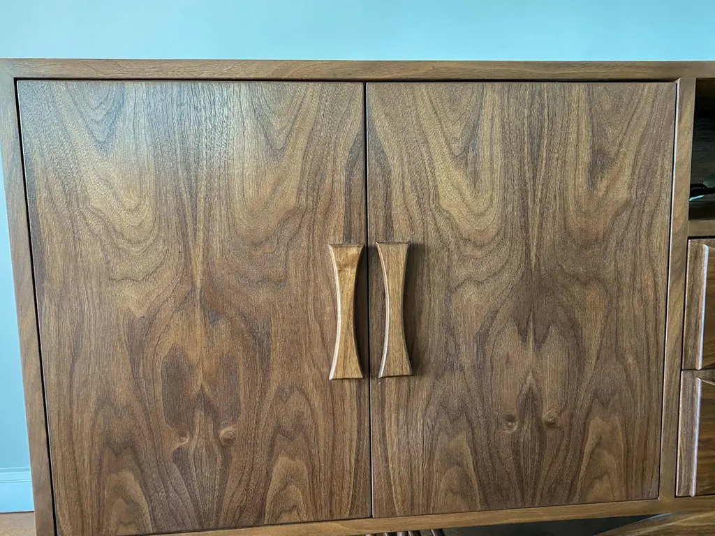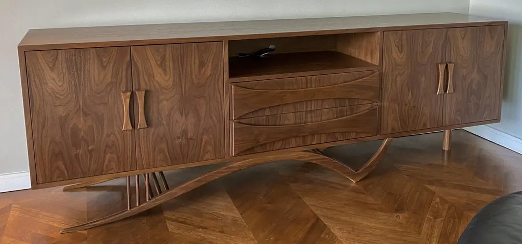 Custom Midcentury Style Walnut Sideboard With Curved Leg By Adesso Imports