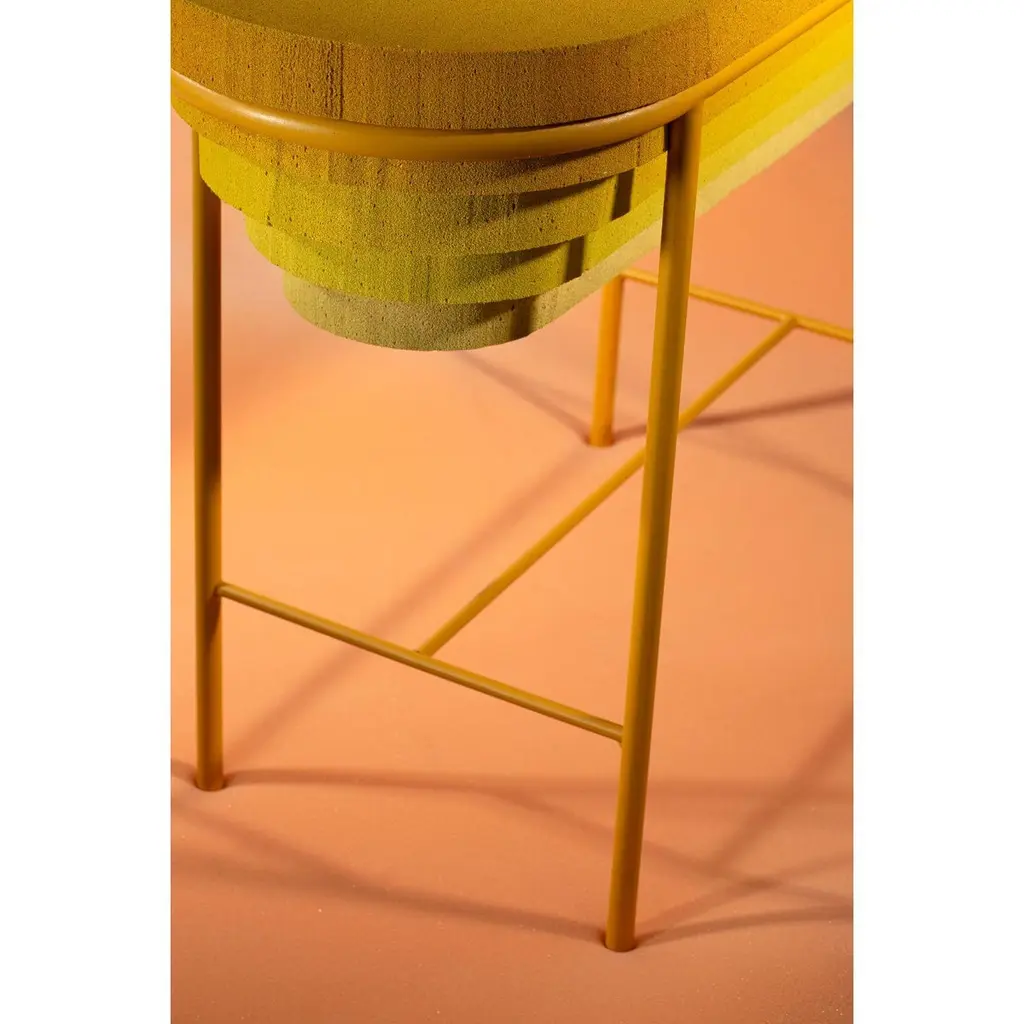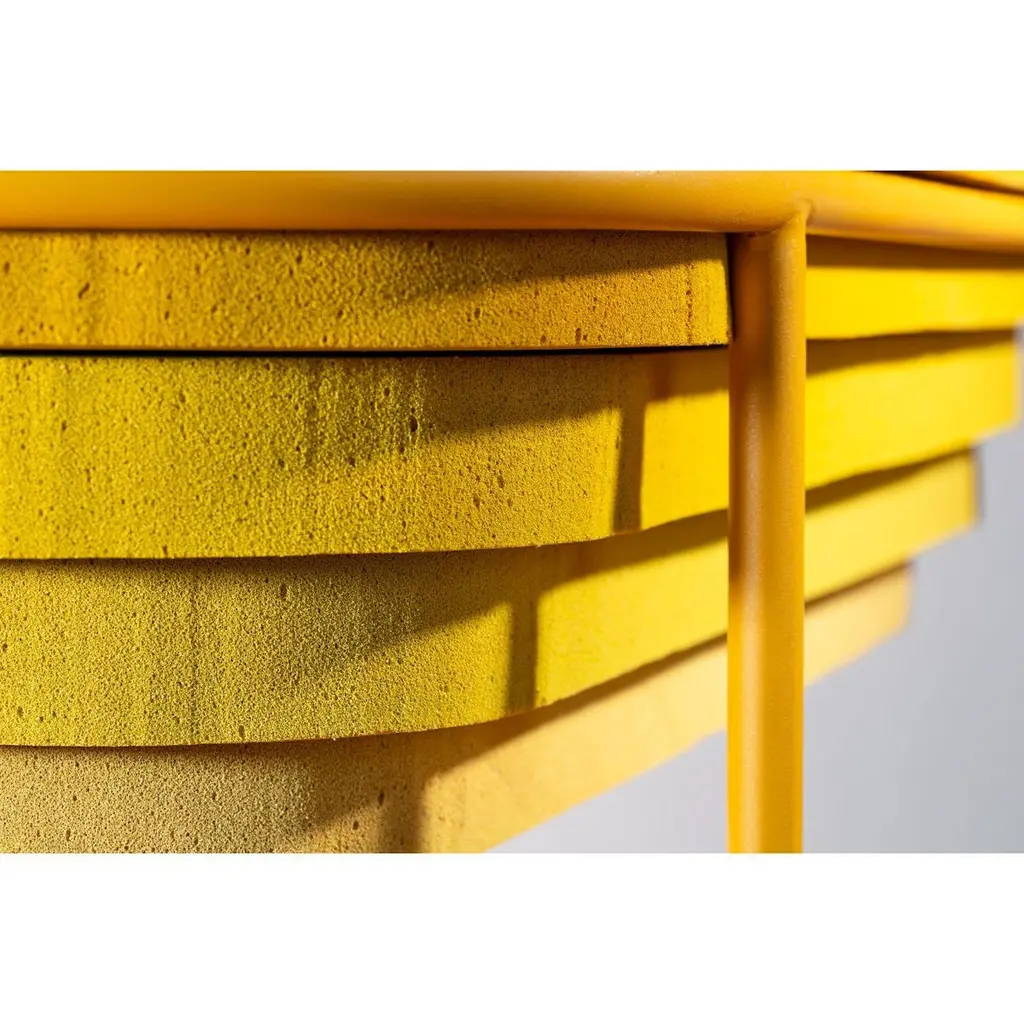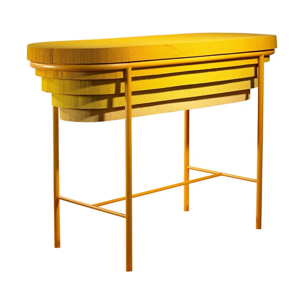 D33 - sideboard by Cultivado Em Casa.Dimensions: 120 x 45 x 80 cm.Materials: D33 foam, acrylic paint, acrylic resin, carbon steel.Also available: different colorsThe D33 collection is intended to enhance foam, a material so present in furniture, but always hidden. Abusing its main characteristic, absorption, the entire volume of the material undergoes an intense soaking of paint and acrylic resin, which after the drying process becomes rigid and allows us to use new ways. From the overlapping of layers, through cutouts of plates, shades in gradient were used, seeking to enhance its geometry and its striking texture. Cultivado em Casa is a creative studio, founded in 2014. With a particular interest in experimenting with materials and concepts, it travels through different design practices, exploring the relationship between objects and the space that surrounds us.