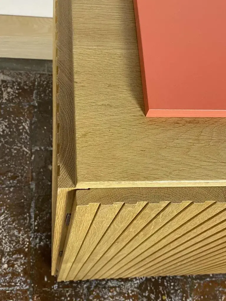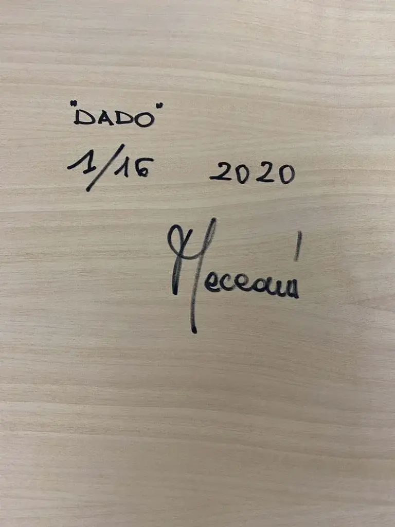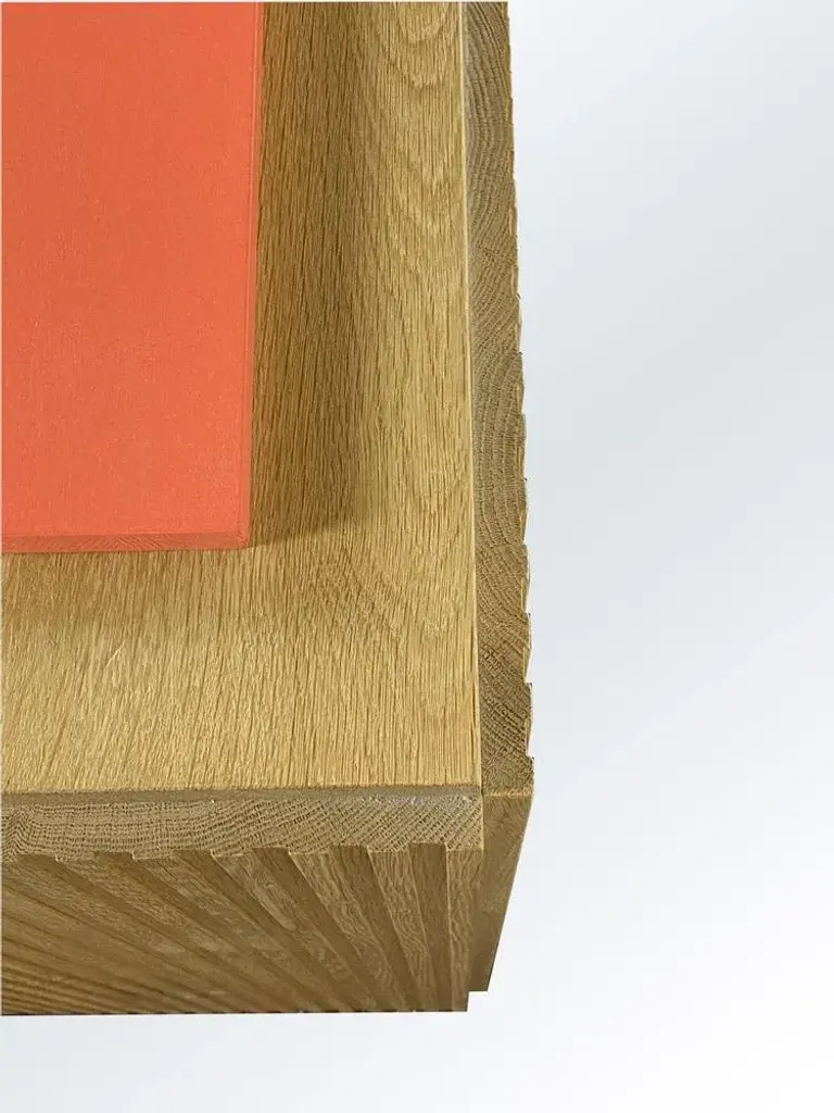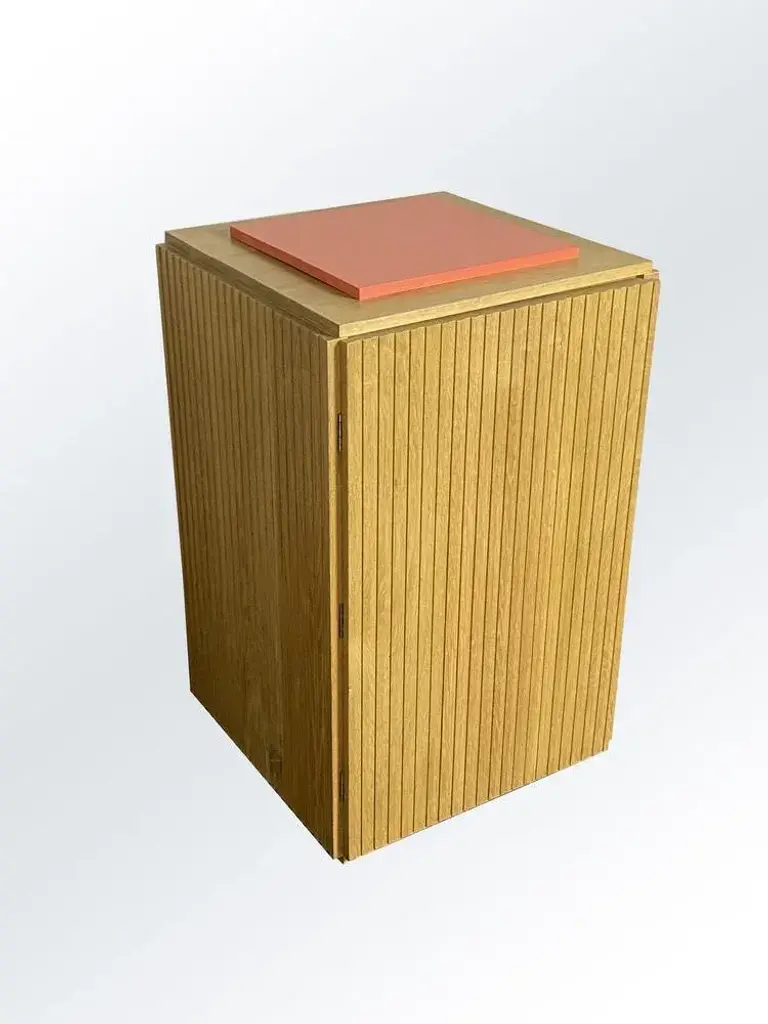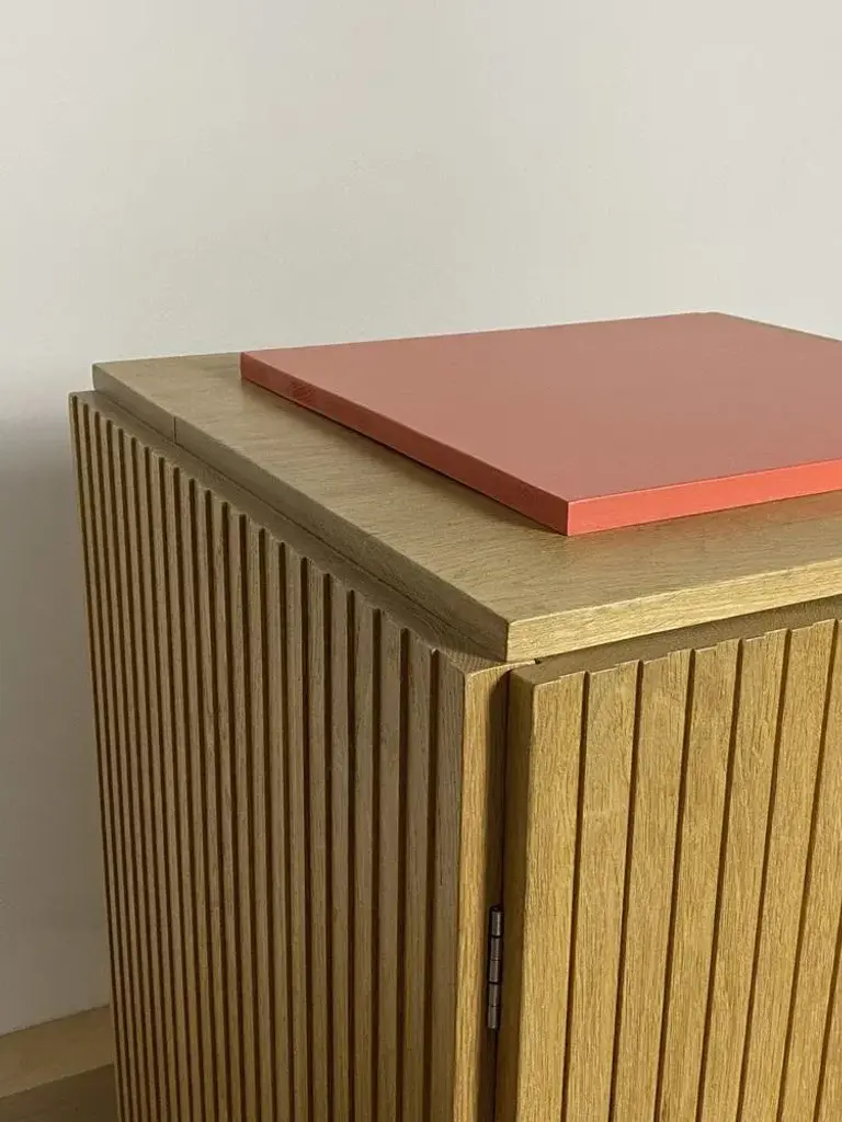 "Dado" belief by Pietro Meccani for Meccani Design, 2020. Credenza made of oak with an door and an internal shelf. Lacquered top. Limited edition of 16 pieces all with autographed signature by the author, date and numbering. Signed by Maker,Numbered