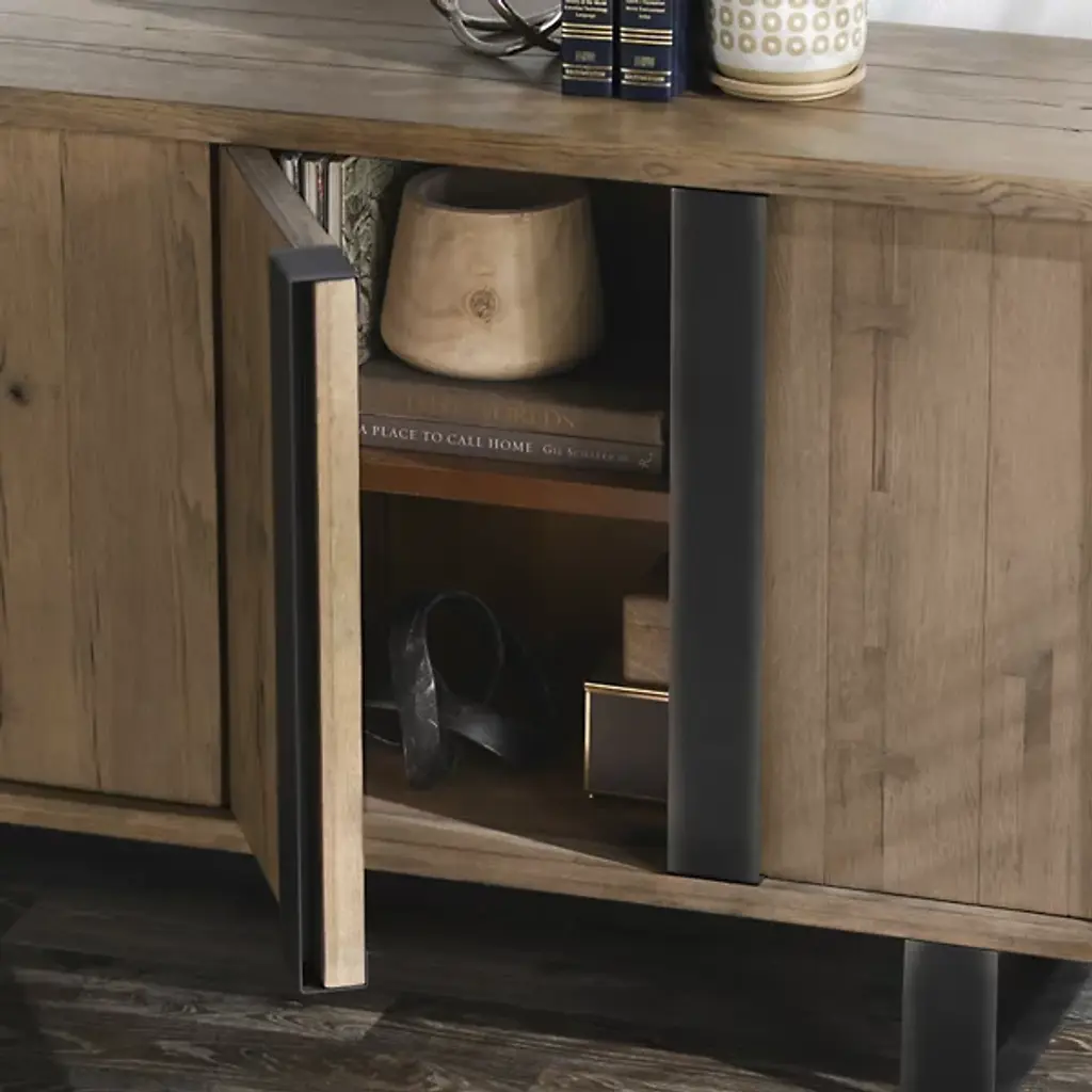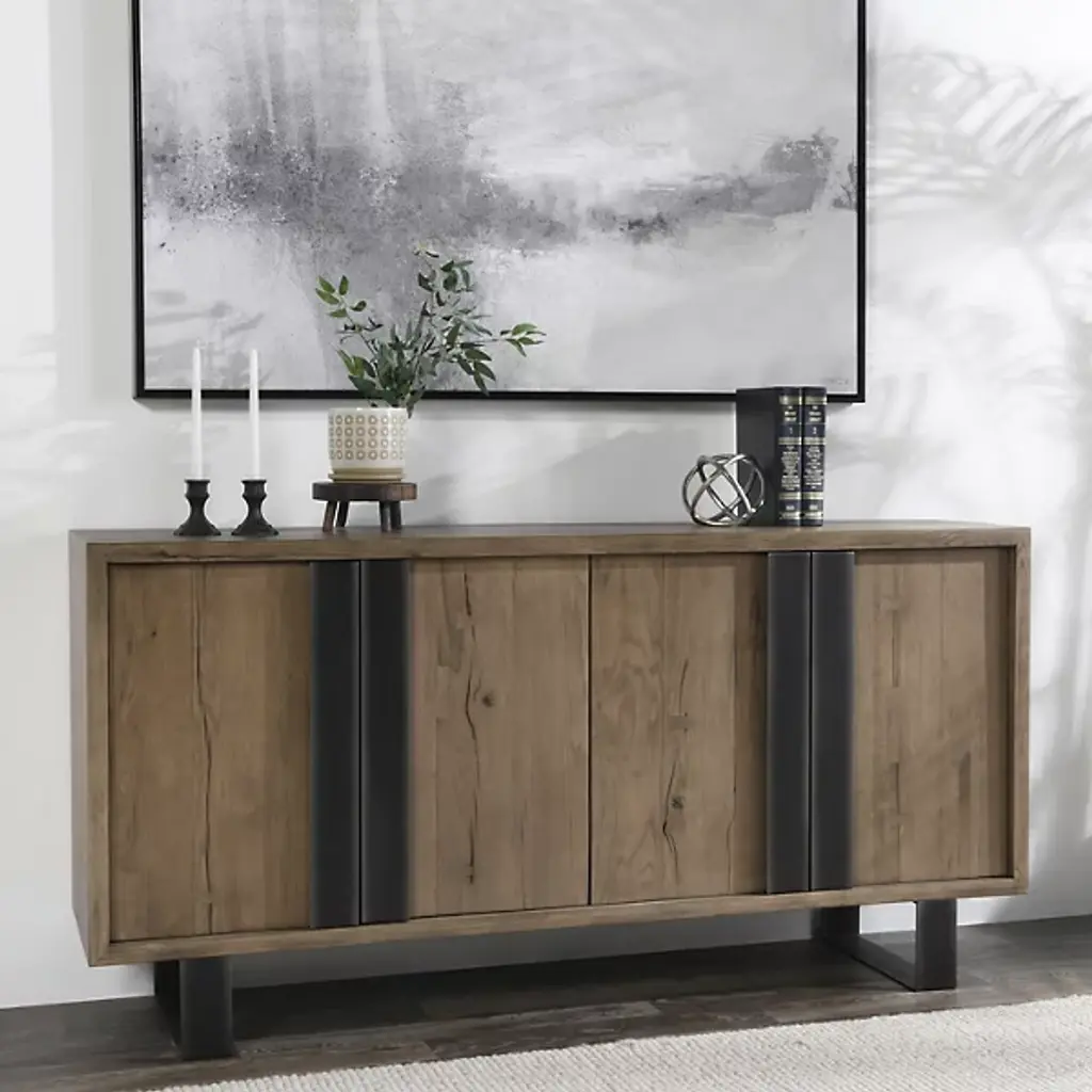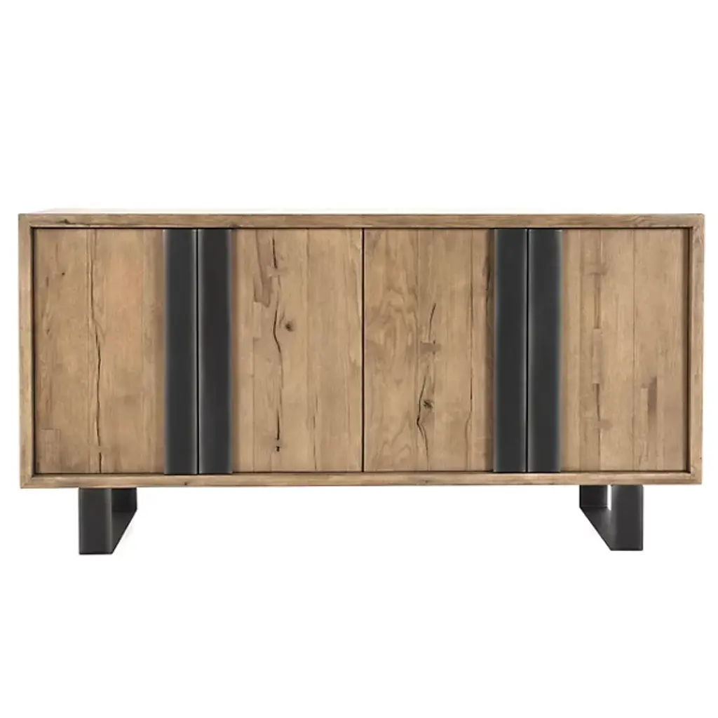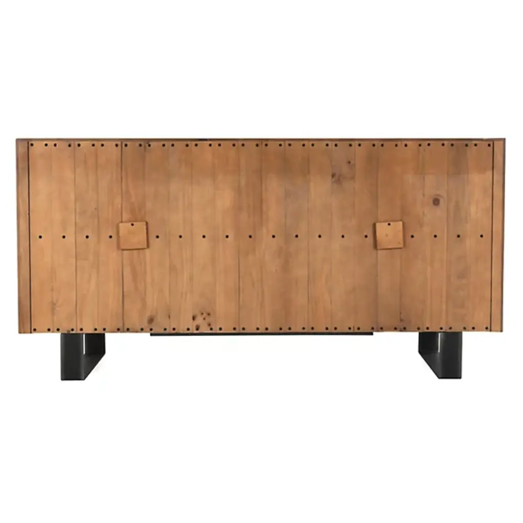 Add style to your storage with the Danica Sideboard from Classic Home. Made in Vietnam from reclaimed oak, this piece is FSC-certified for sustainability. Its four doors feature magnetic closure and long metal handles, with bracket-style metal bases that create a contemporary bohemian vibe. Two spacious shelves inside with cord management openings ensure functionality without an enclosed design, perfect for organizing and presenting any essential items you want to keep close by.