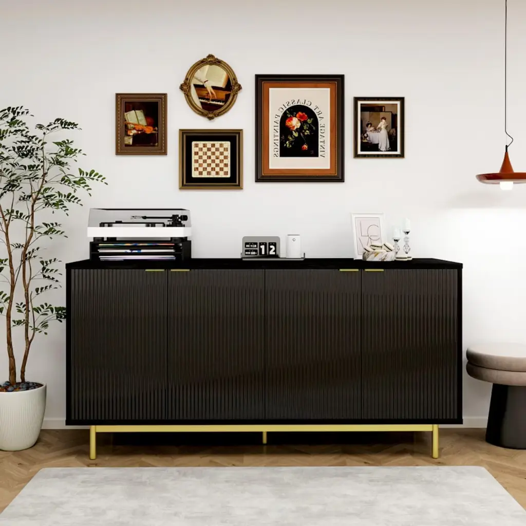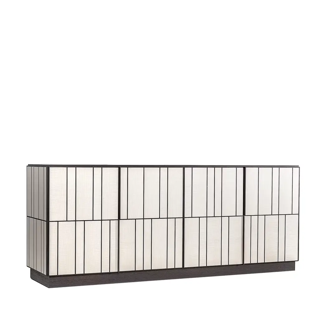 Dark-Grey Velvet 4-Door Sideboard By Mascia Meccani
