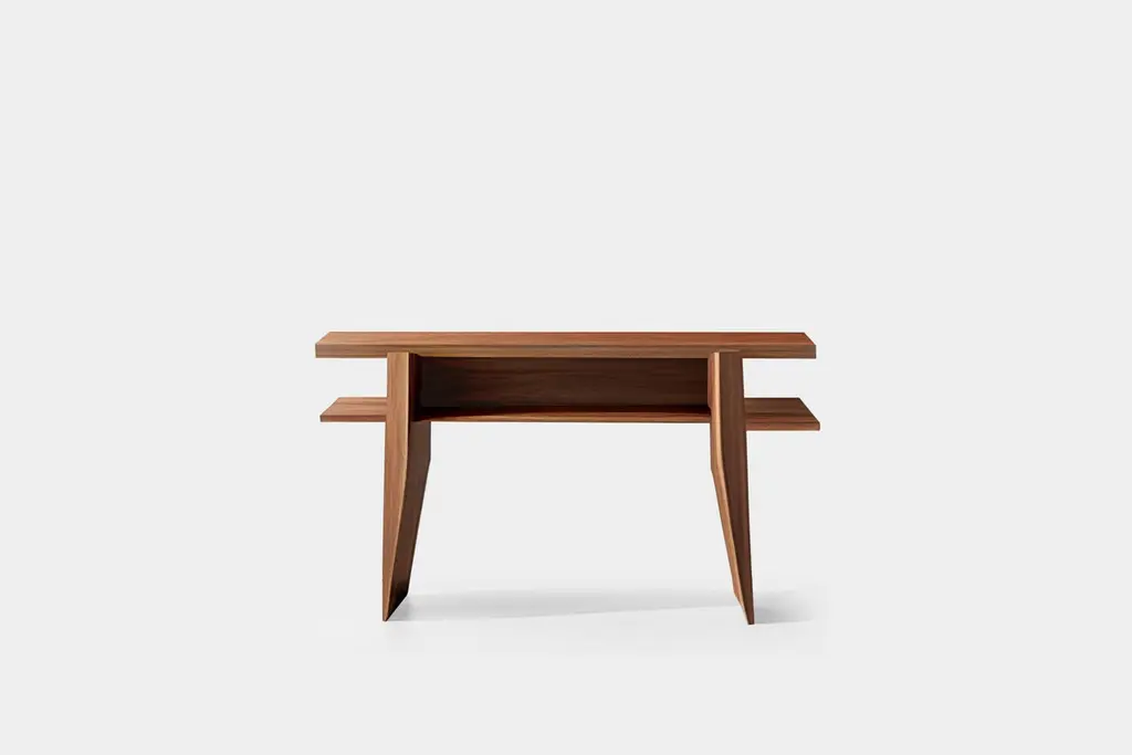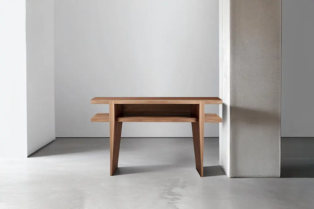 Console made of solid walnut wood stained with a water-based dye and finished with matt polyurethane.——NONO is a Mexican design brand with more than 10 years of experience dedicated to the production of interior furnishings, editions, and custom-made projects. At NONO, we create pieces of extraordinary beauty, accommodating the particular needs and tastes of each client with exclusive high-quality designs.————Some details to consider when placing an order with us:• Catalog images are digitally generated. Actual products may slightly vary in texture, grain, and final finish due to natural material differences. Despite these variations, our expertise ensures each piece maintains high quality and matches the intended design.• All of our products are made to order, and the lead time for standard products is estimated to be 9 to 12 weeks, plus shipping time. However, special pieces or sculptures may require a longer lead time.• We offer customization in dimensions and finish for all of our furniture pieces, which may result in additional charges.• We only facilitate freight services by a third party. The client is solely responsible for any associated import/export taxes, as well as any necessary customs paperwork.• We are not responsible for any damages that may occur during shipping or for any customs-related delays.
