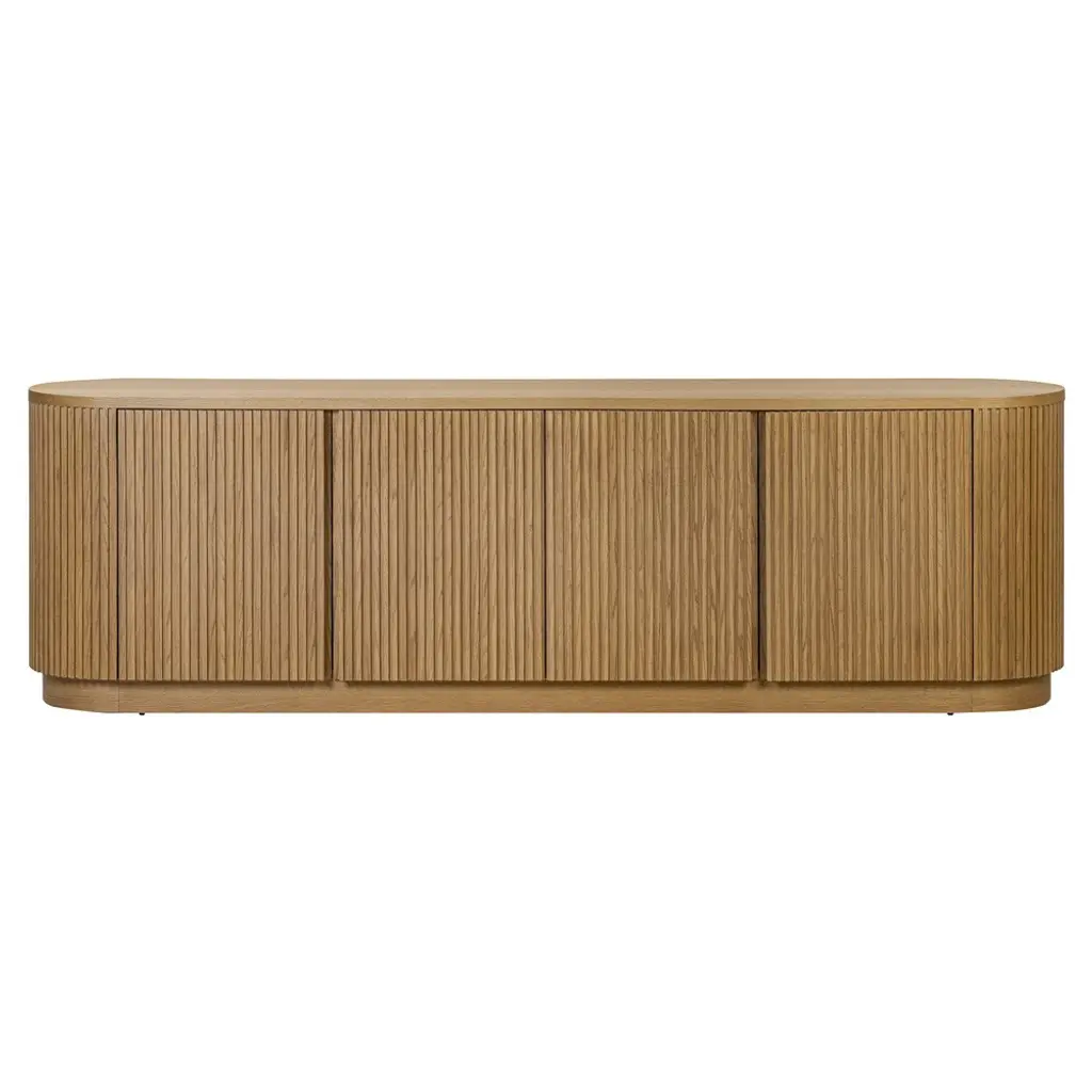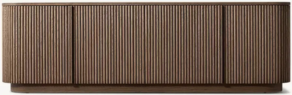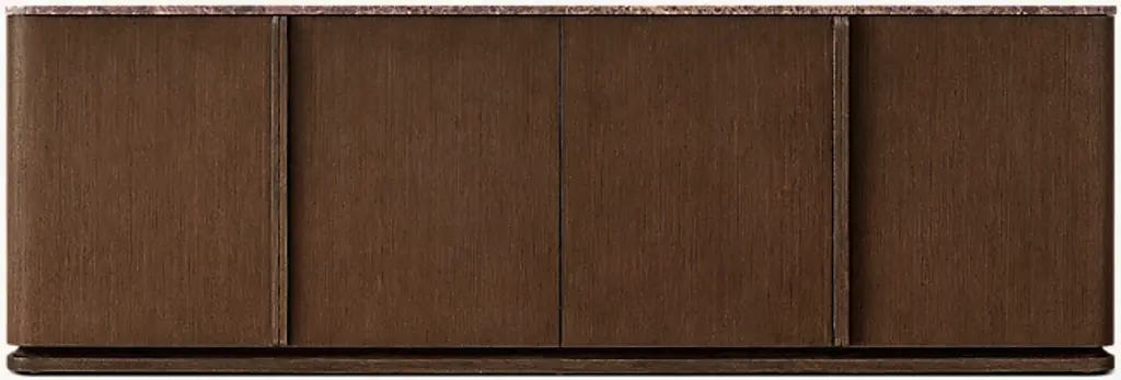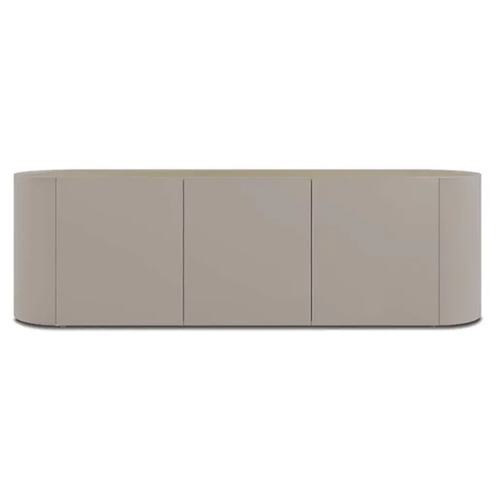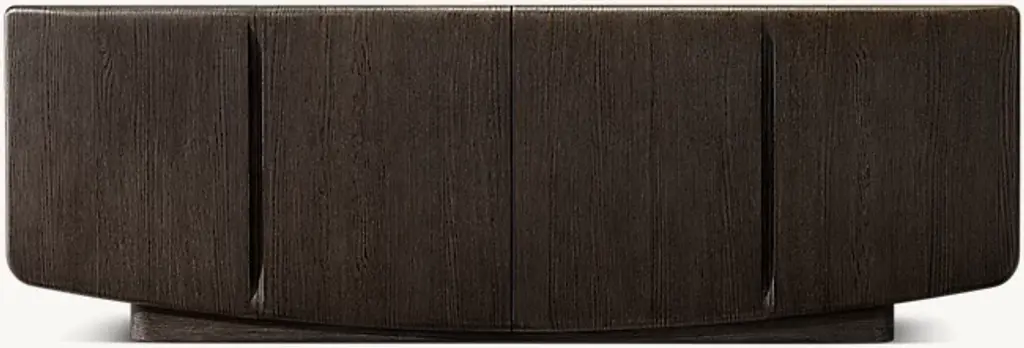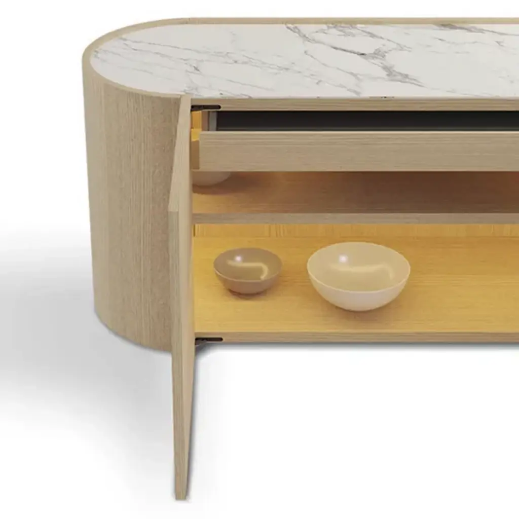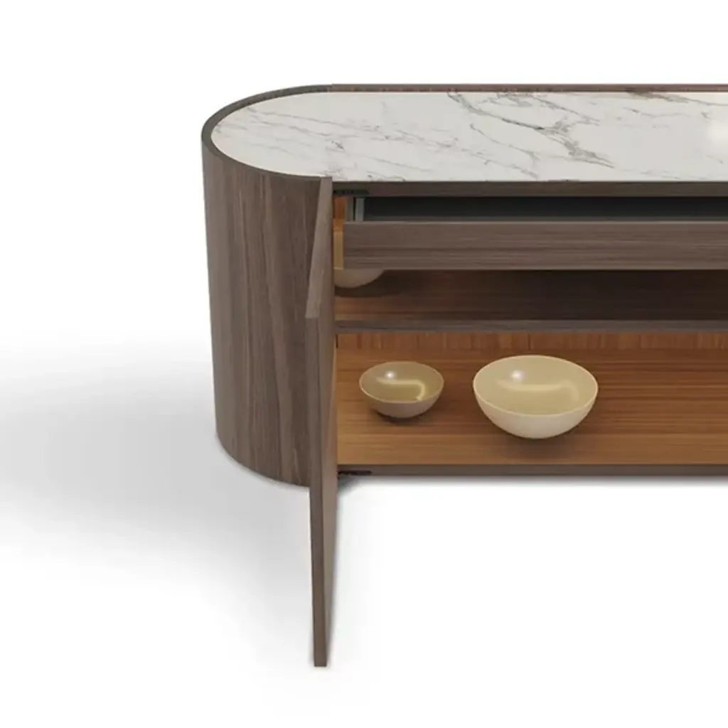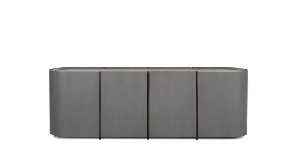 The Dedalo Sideboard by Pianca merges refined elegance with incredible functionality. Designed by Luciano Marson, its oval form features gracefully curved ends connected by a slim back panel, creating a recessed display-top tray. A discreet front handle leads to a spacious interior with a convenient Ala drawer using invisible opening hardware for easy opening and self-closing while adding a welcome touch of refinement. This Italian-made piece offers ample hidden storage while adding luxurious sophistication to any modern living space.