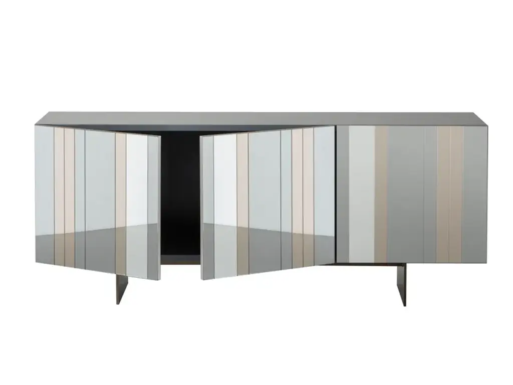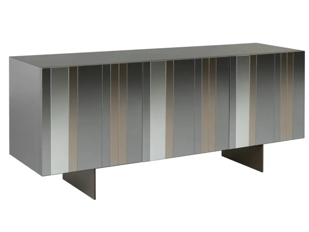 The Diva sideboard, with a linear design that characterizes its high impact aesthetic value, is made with a combination of mirroring elements in the silver, bronze and smoked variants. The lines create movement with a suggestive minimal game, warm and welcoming, for those who love details.