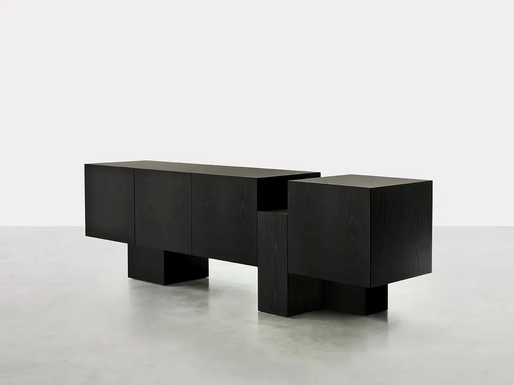Dolmen, Unstructured Black Ash Square Sideboard, Dainelli Studio For Somaschini