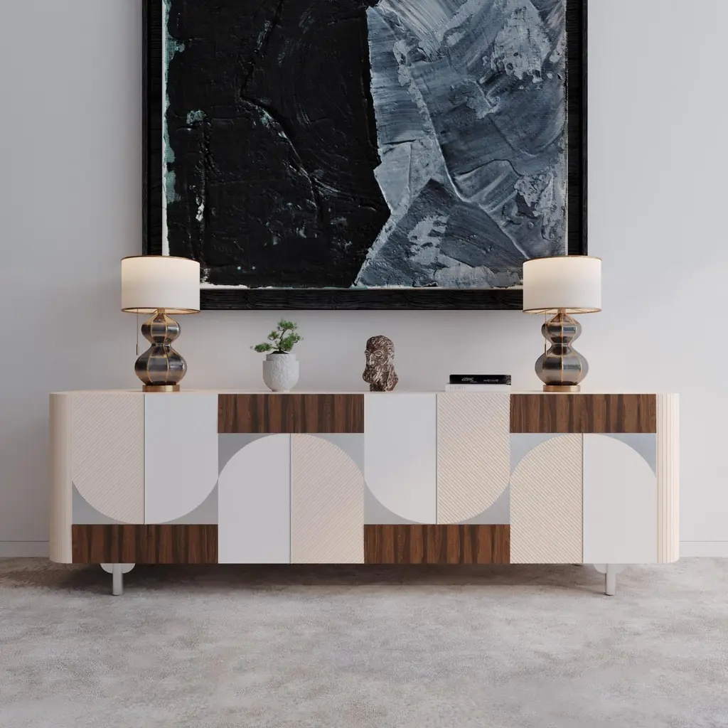 Metropolis sideboard was created embodying the elegance, fine craftsmanship and rich materials of Art Deco translated into a dichotomy in which opposites attract each other: Soft curvy shapes combine with straight lines to create a visually balanced object. Soft, delicate Matte Lacquer structure and carved doors with Solid Walnut and Copper details and Feet, produce a rich, textured pieceThe Natural Marble Stone details enrich this piece with its variable grain and veins.Made to Order. Born in Portugal, Dooq is a design company dedicated to celebrate the luxury of living.Our studio focuses on an extensive research of details together with a vast iconographic research around art and design, creating an ever-evolving language that emphasizes first the small details. We seek to find balance in contrasts, creating pieces where feminine meets masculine, small meets large, soft meets solid and past meets the present allowing the new to blossom.Portugal is a country leader in craftsmanship, which used in combination with the creativity of great designers helps creating handmade pieces with a one-of-a-kind character to each, with an uncensored aesthetic where each piece has its own reason of existing. Dooq is pursuing elegance with audacity and devotion, crossing the boundaries between art and design.For sales with delivery address within European territories, VAT will be charged additionally to the stated price.