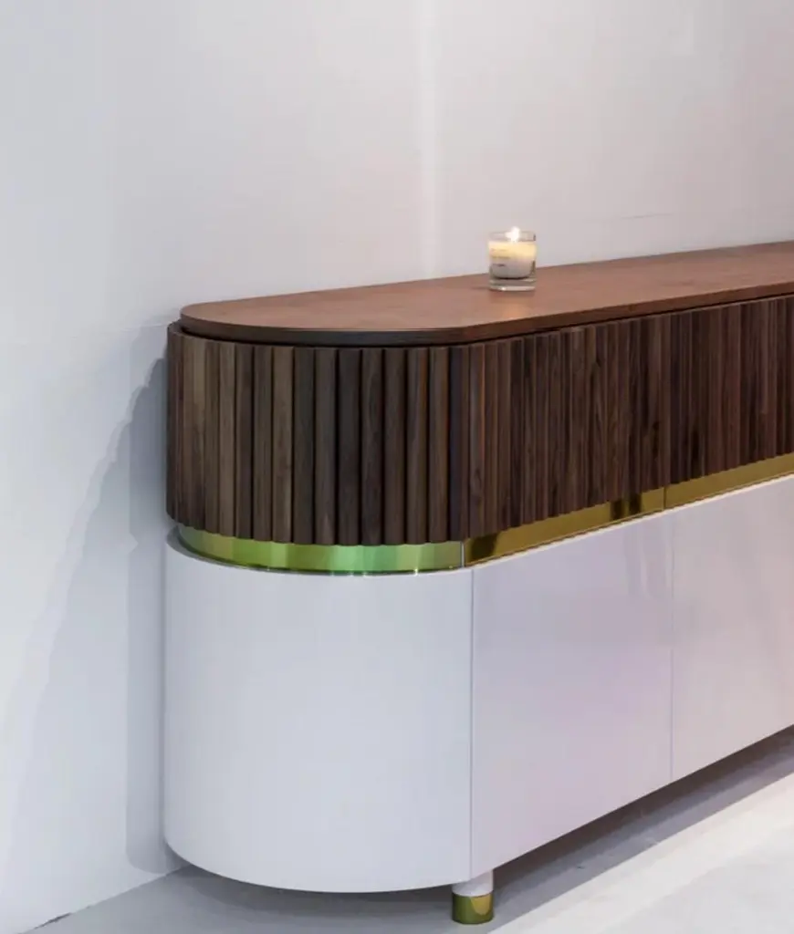 Like its name suggests, Berlin sideboard is inspired by Bauhaus, a wave of thought that is impossible to overlook when passing through the streets of Berlin. In a more down to earth piece, clean lines and a certain absence of excessive ornamentation result in a harmony between design and function.Natural walnut, Polished Brass and Rose Lacquer combined in a balanced composition.Made to order.Born in Portugal, Dooq is a design company dedicated to celebrate the luxury of living.Our studio focuses on an extensive research of details together with a vast iconographic research around art and design, creating an ever-evolving language that emphasizes first the small details. We seek to find balance in contrasts, creating pieces where feminine meets masculine, small meets large, soft meets solid and past meets the present allowing the new to blossom.Portugal is a country leader in craftsmanship, which used in combination with the creativity of great designers helps creating handmade pieces with a one-of-a-kind character to each, with an uncensored aesthetic where each piece has its own reason of existing. Dooq is pursuing elegance with audacity and devotion, crossing the boundaries between art and design.For sales with delivery address within European territories, VAT will be charged additionally to the stated price.