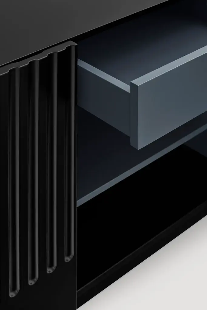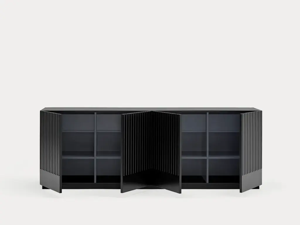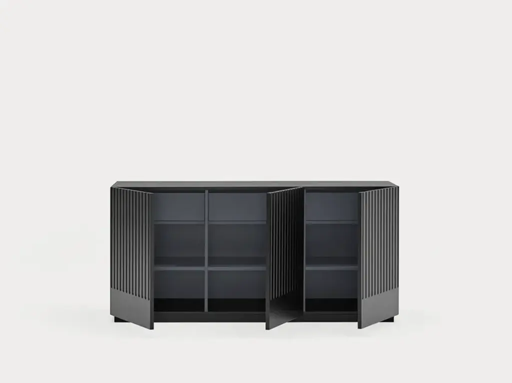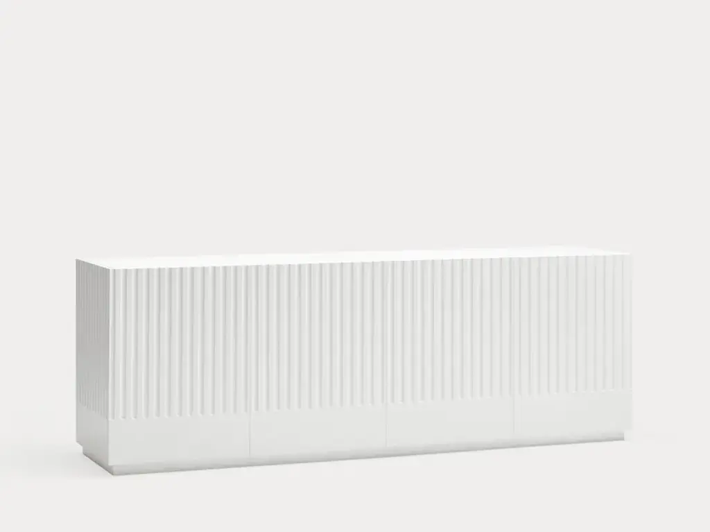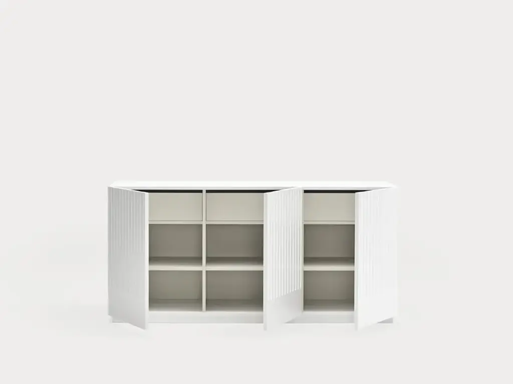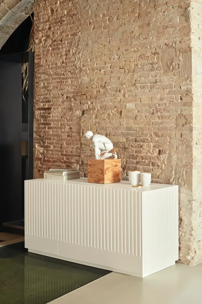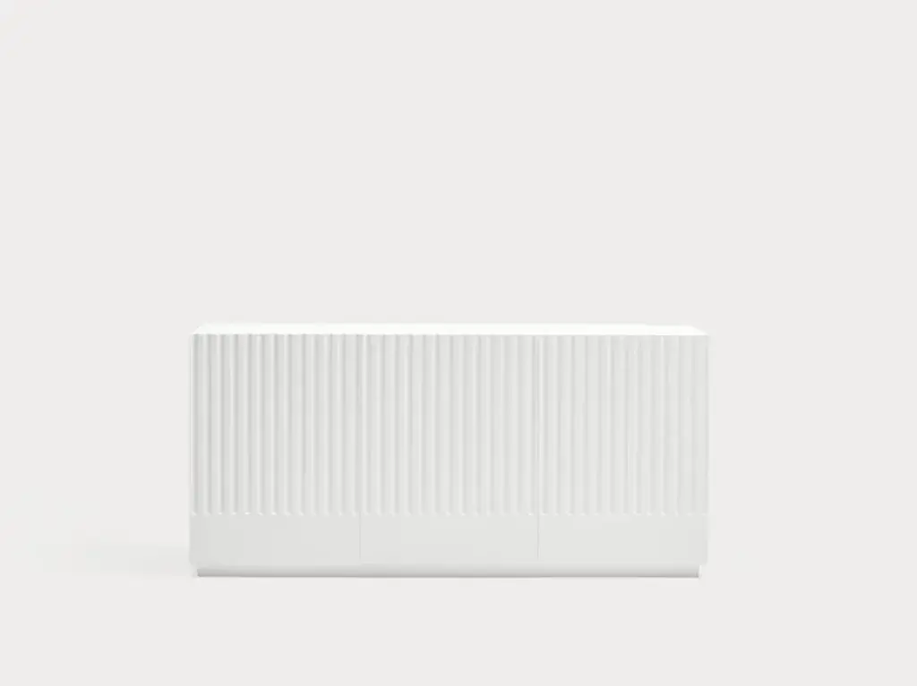 Doric is a laquered MDF sideboard with doors. Doric collection has been inspired by the Classical Greek architectural orders. Thus, its vertical grooves evoke the prevailing simplicity and robustness of that period: a search of beauty based on the proportionality of the classical precept of architecture.