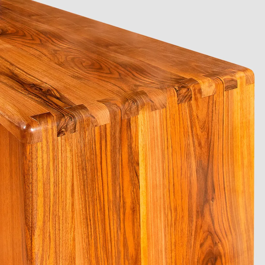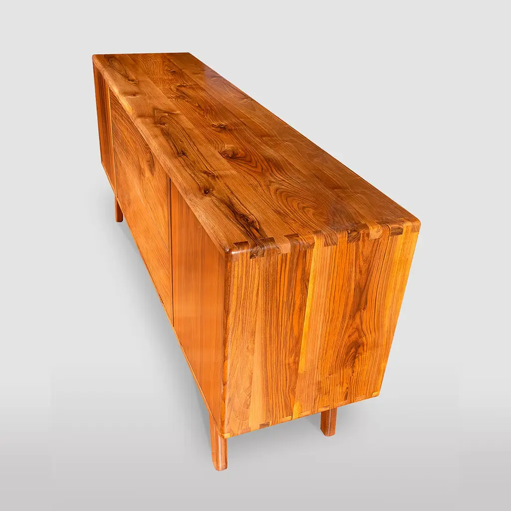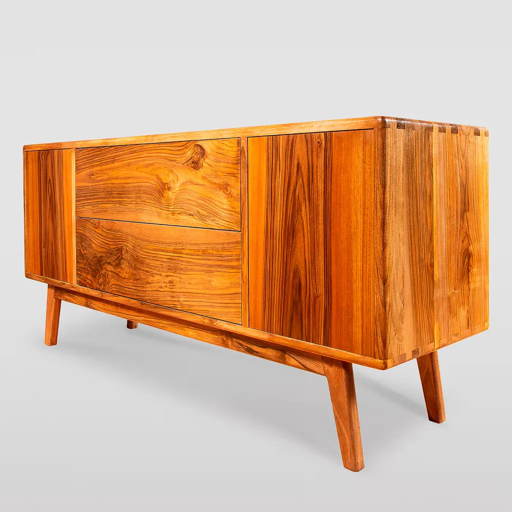 Clean lines in impeccable Scandinavian style define the look of this sideboard, handcrafted of solid walnut showcased in its unrepeatable natural look enhanced by hand-applied beeswax. Raised on slanted legs, it provides ample storage space with its two central drawers and side doors, featuring dovetail joints and equipped with Blum hidden guides and Touch closing system not to interrupt the wood's natural grain. Please ask the Concierge for customizations and tailor-made options.