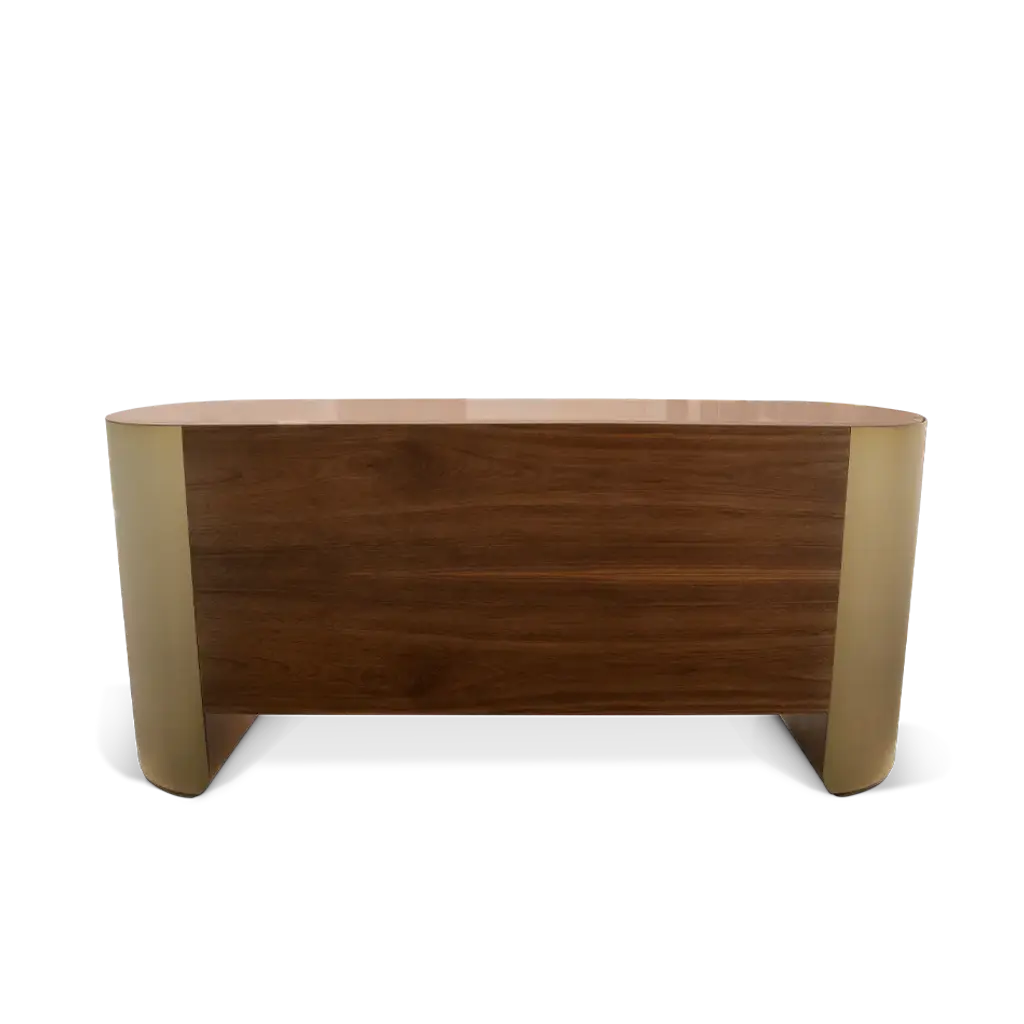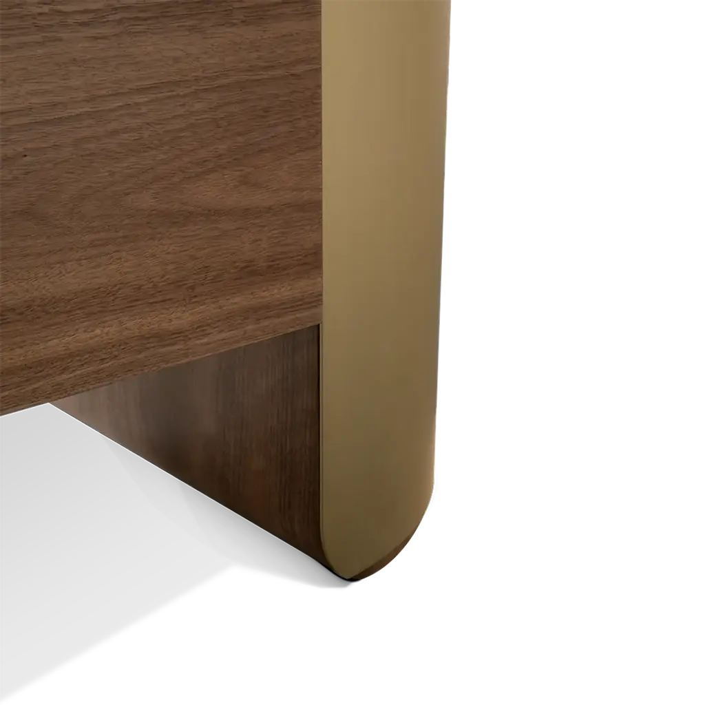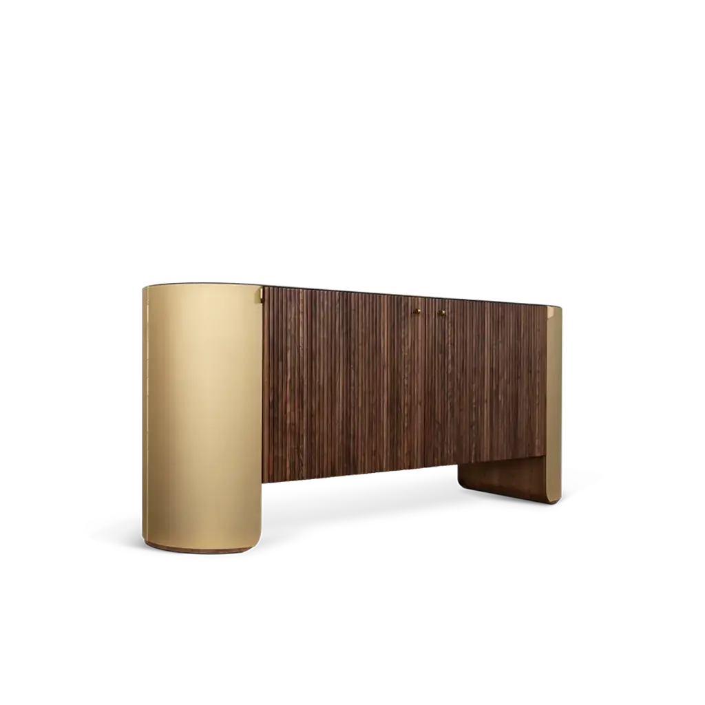 Combining the best of mid-century and Italian design excellence, the Duncan sideboard reinvents the 60s charm in a unique way. The curved lateral metal structures support and hug the body of the side doors, while the main storage space is enhanced with a geometric wooden pattern that adds another layer of texture. High-quality materials and exquisite craftsmanship make this an exceptional statement piece for any modern home design.