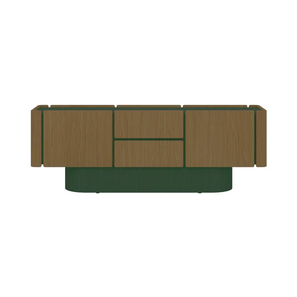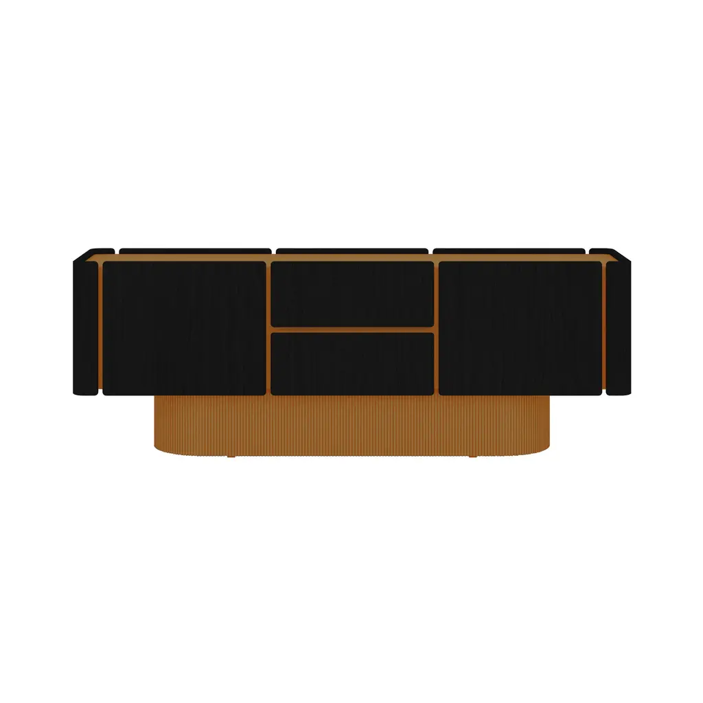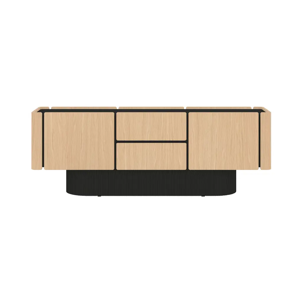 The Dune Sideboard's distinctive base features sculptural ridges reminiscent of dunes. The sideboard's sinuous, rounded wooden doors, offered in 5 oak finish options, exude sophistication and elegance. Available in multiple configurations, including options with doors and drawers, the Dune Sideboard offers versatile storage solutions. Its design allows for access from both sides, making it an ideal choice for use as a room divider.