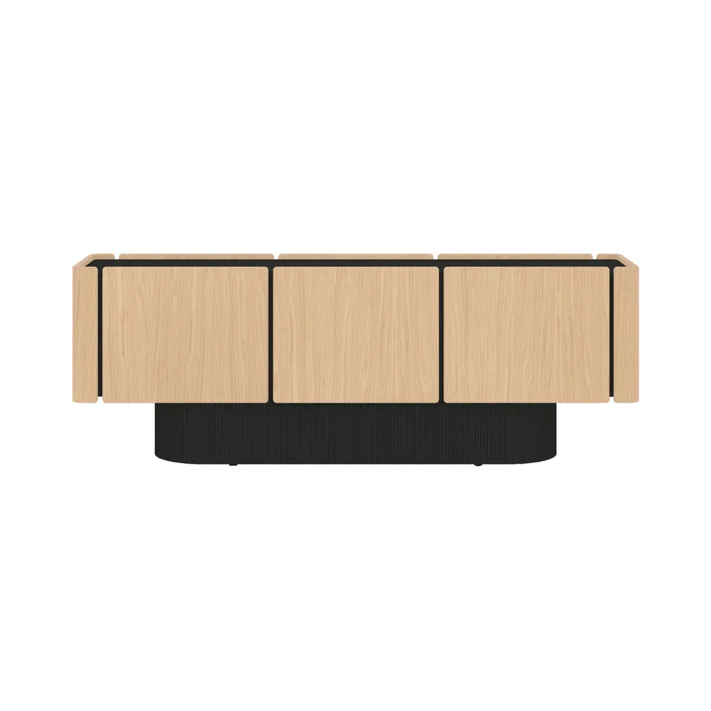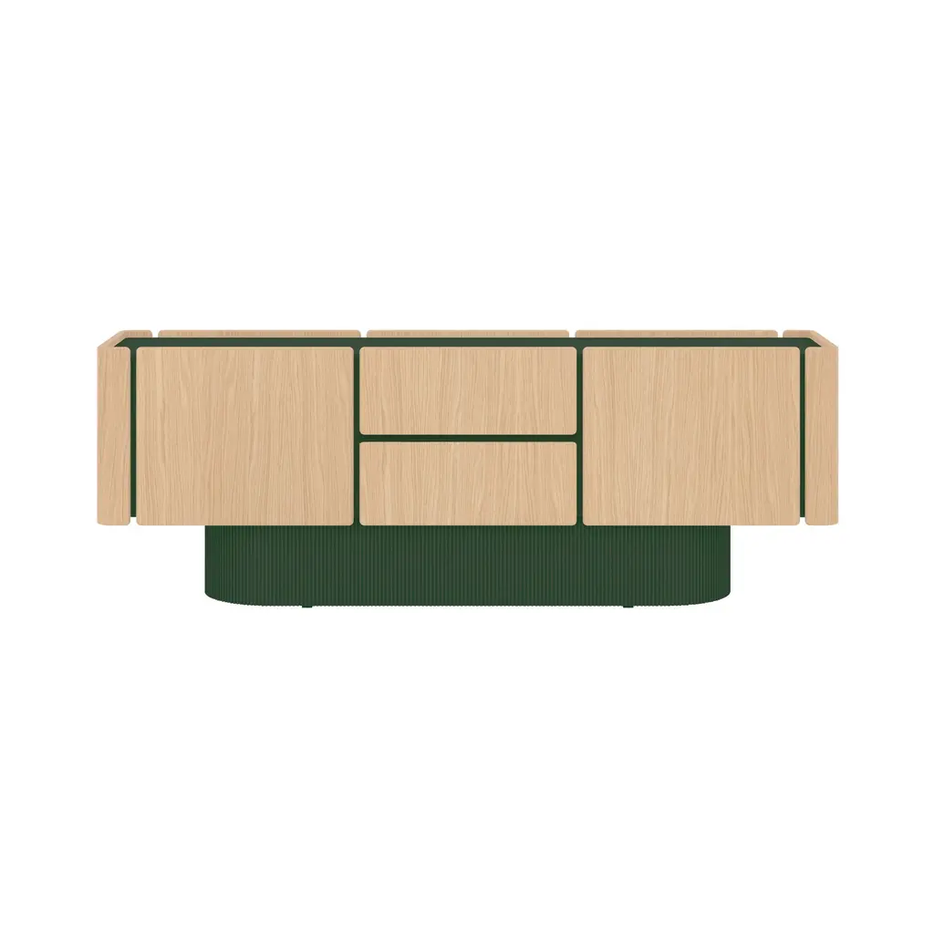 The Dune Sideboard's distinctive base features sculptural ridges reminiscent of dunes. The sideboard's sinuous, rounded wooden doors, offered in 5 oak finish options, exude sophistication and elegance. Available in multiple configurations, including options with doors and drawers, the Dune Sideboard offers versatile storage solutions. Its design allows for access from both sides, making it an ideal choice for use as a room divider.