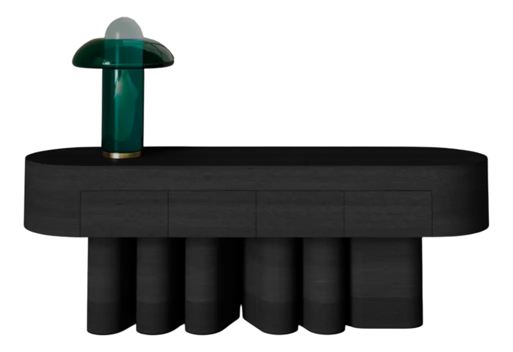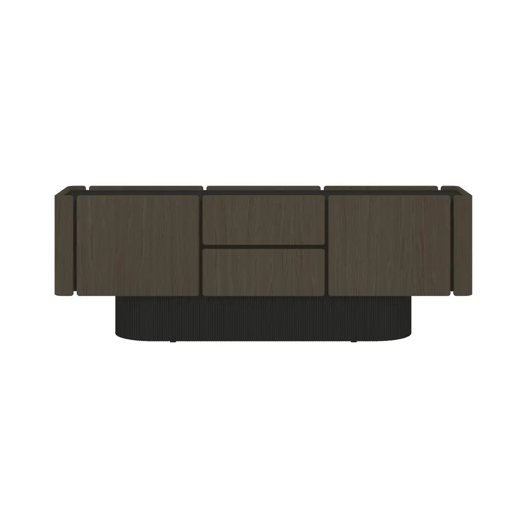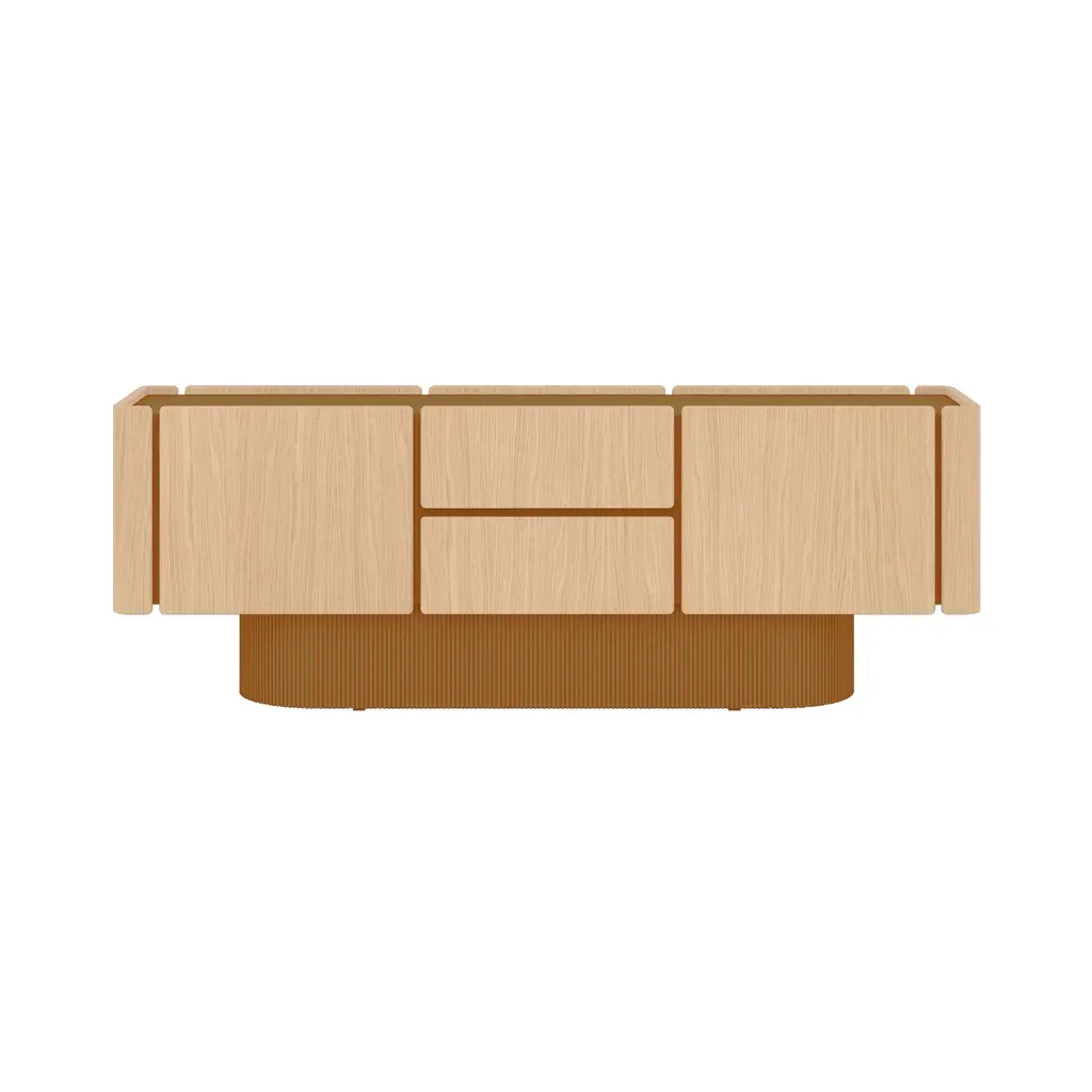 The Dune Sideboard's distinctive base features sculptural ridges reminiscent of dunes. The sideboard's sinuous, rounded wooden doors, offered in 5 oak finish options, exude sophistication and elegance. Available in multiple configurations, including options with doors and drawers, the Dune Sideboard offers versatile storage solutions. Its design allows for access from both sides, making it an ideal choice for use as a room divider.