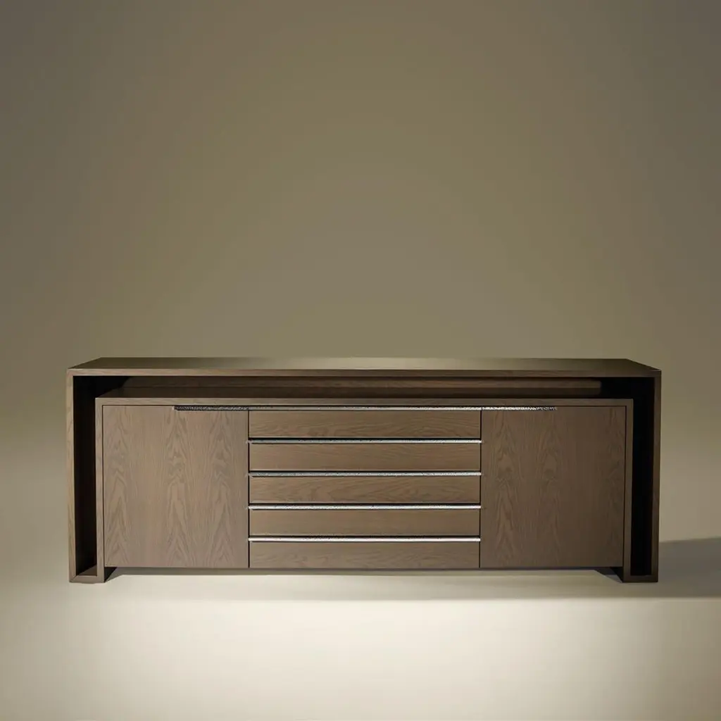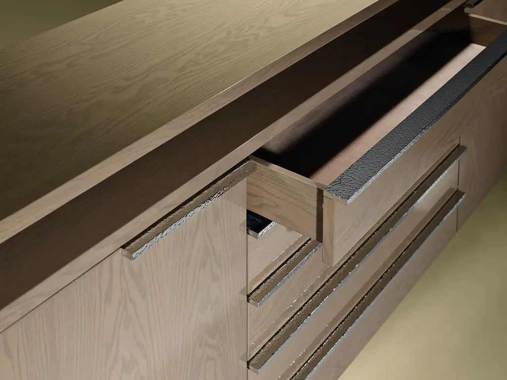 Duplo U sideboard in cream ash with glossy varnish. Chromium handles hammered.Bespoke / CustomizableIdentical shapes with different sizes and finishings.All RAL colors available. (Mate / Half Gloss / Gloss)
