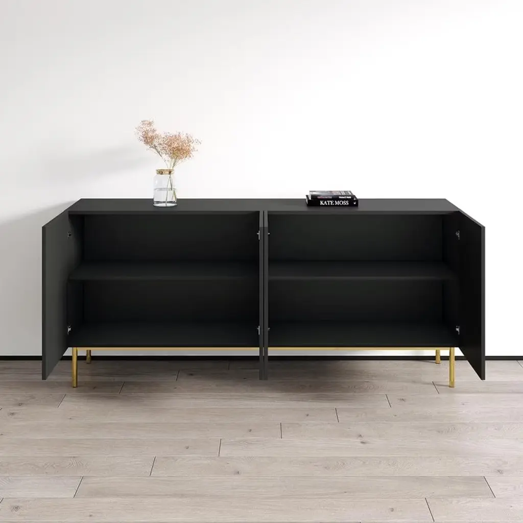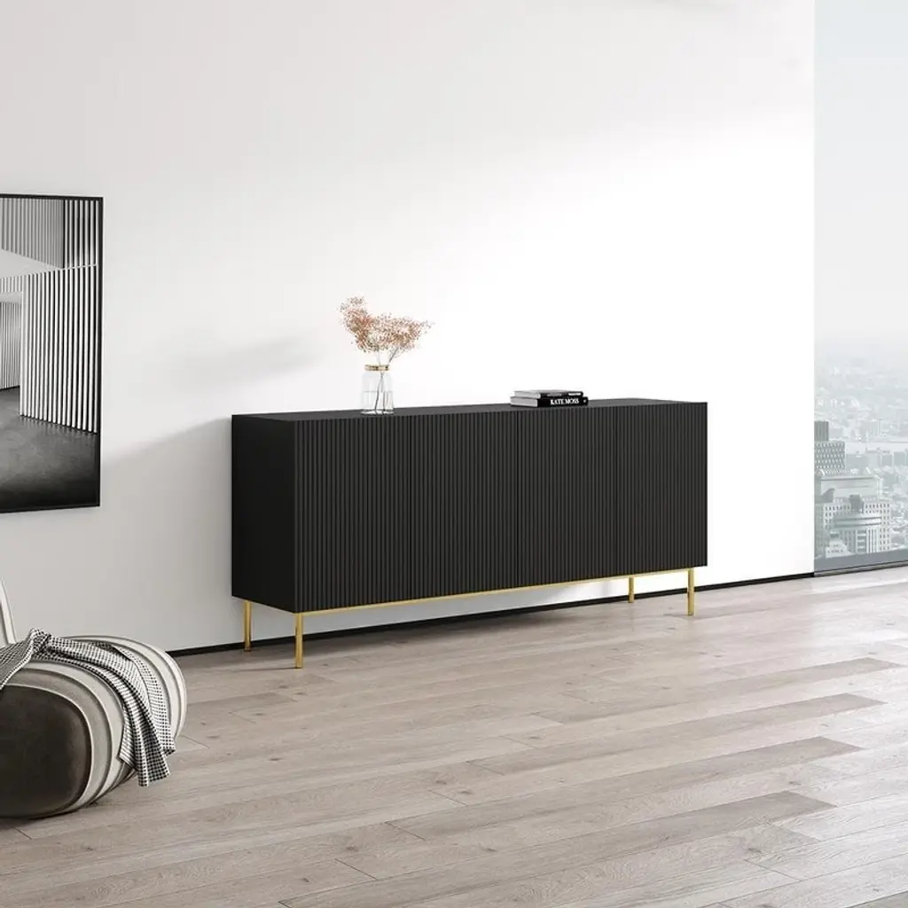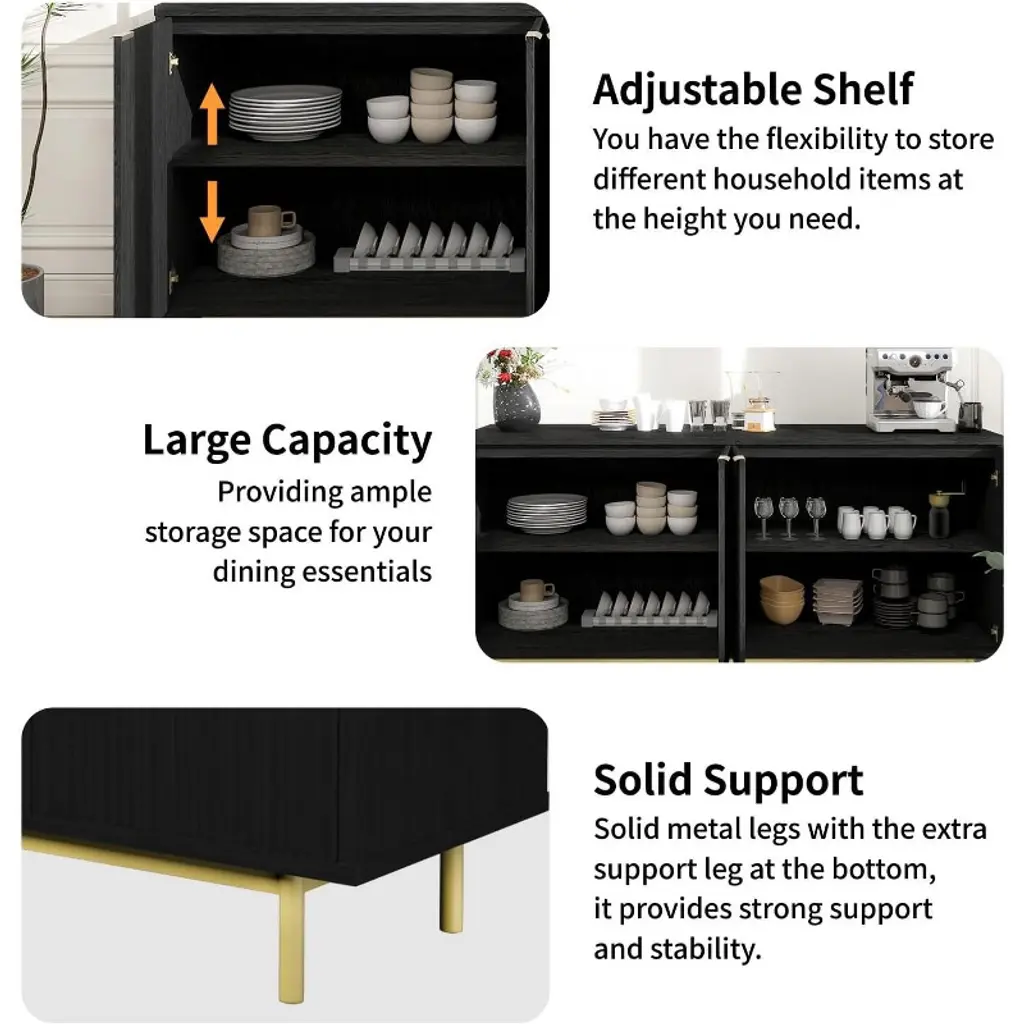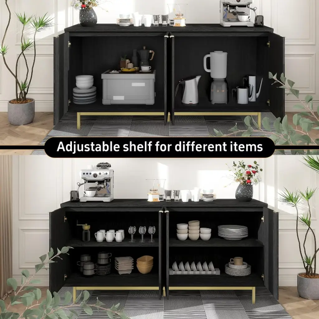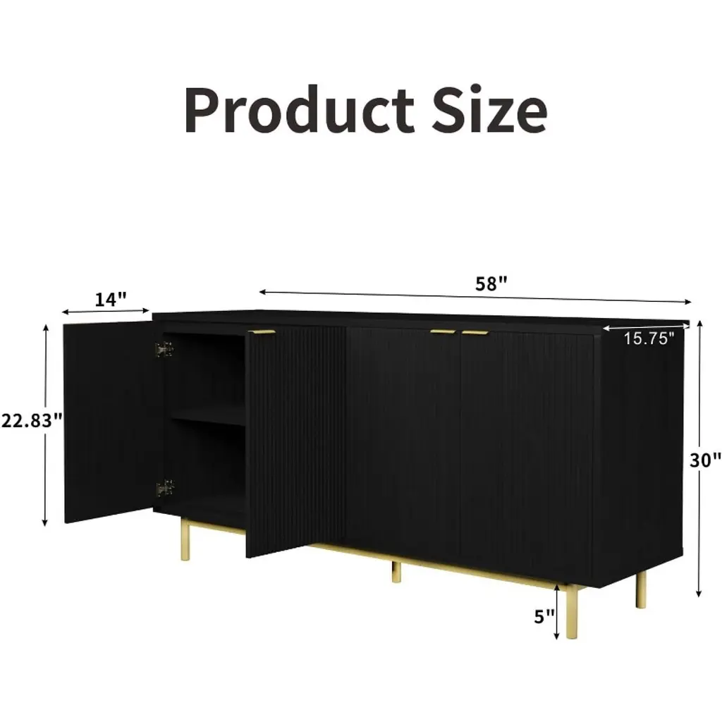 Dyonery 58 Inch Fluted Buffet Cabinet With Shelves & 4 Doors, Modern Storage Sideboard For Dining Room Living Room, Space Saving Organizer,black