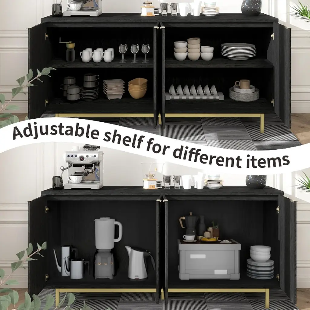 Dyonery Buffet Cabinet With Storage 58" Large Sideboard With Shelves And 4 Doors Black