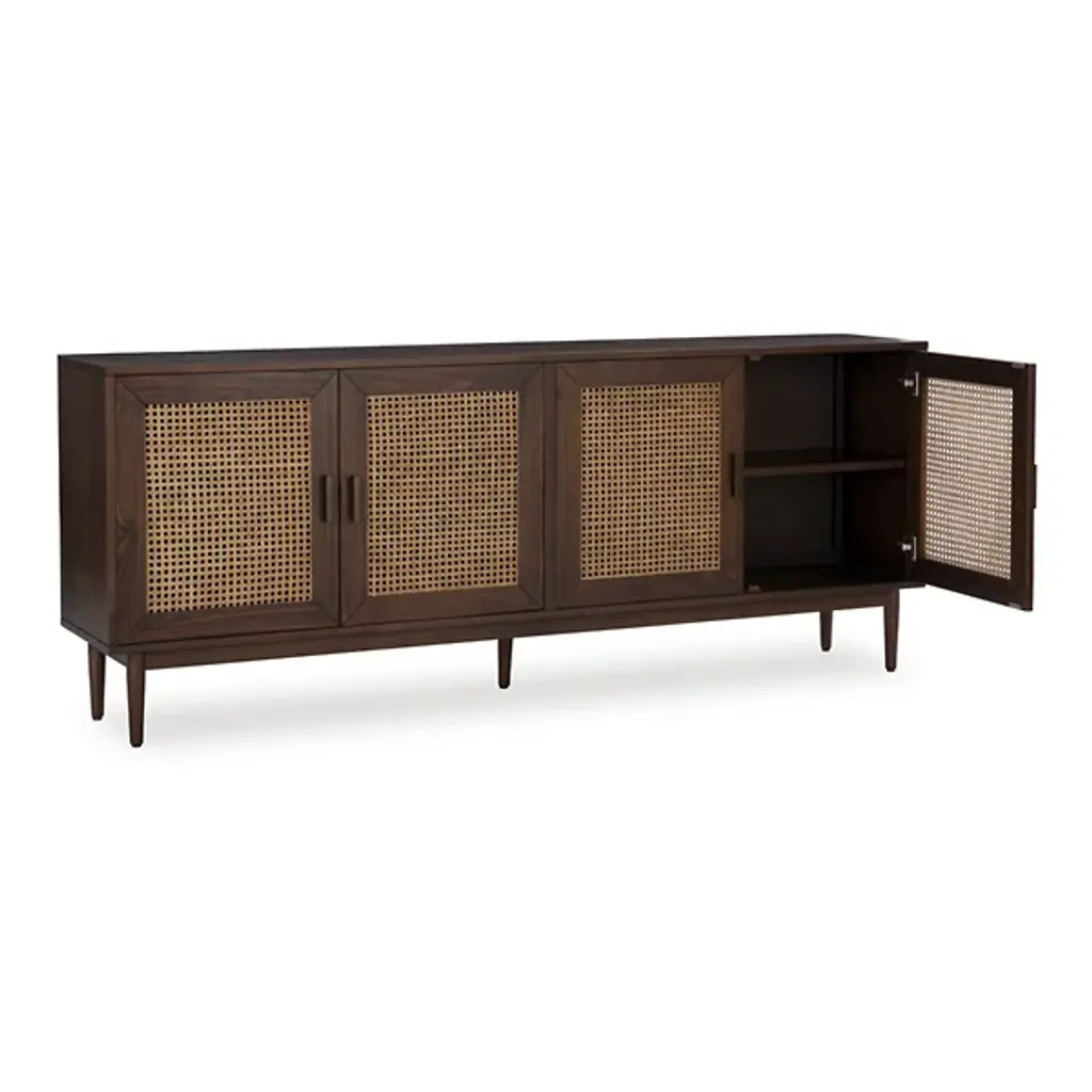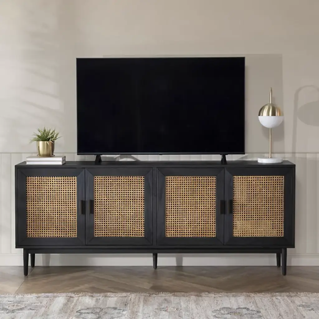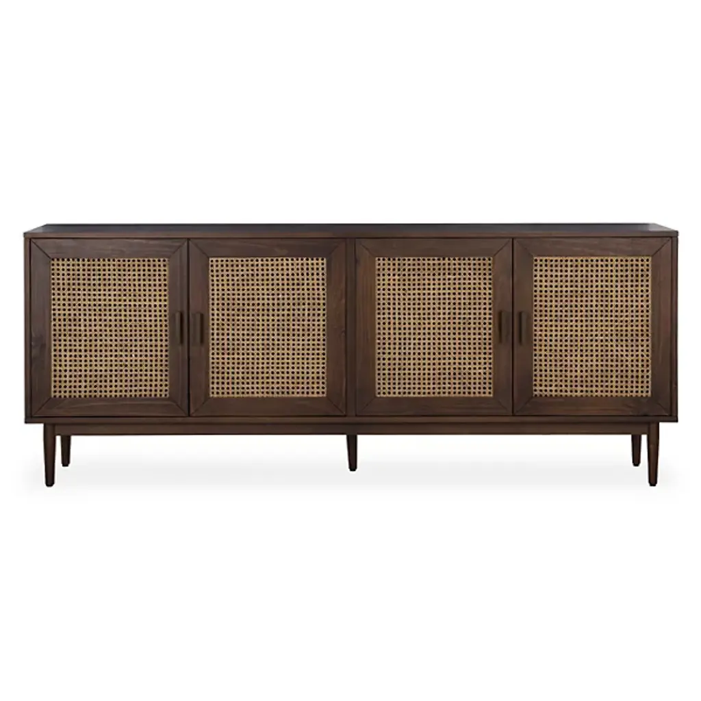 The Edris Sideboard from Classic Home extends the cabinet design to provide extensive storage across dining and living spaces. Woven cane door panels filter light while concealing stored items, and magnetic closures ensure secure operation without visible hardware. Pine wood construction utilizes reclaimed materials that retain authentic aging and character marks from their previous use. The longer proportions accommodate larger items while maintaining the same attention to natural wood variations that make each sideboard unique. Adjustable levelers provide stability, and the versatile design accommodates various interior approaches.