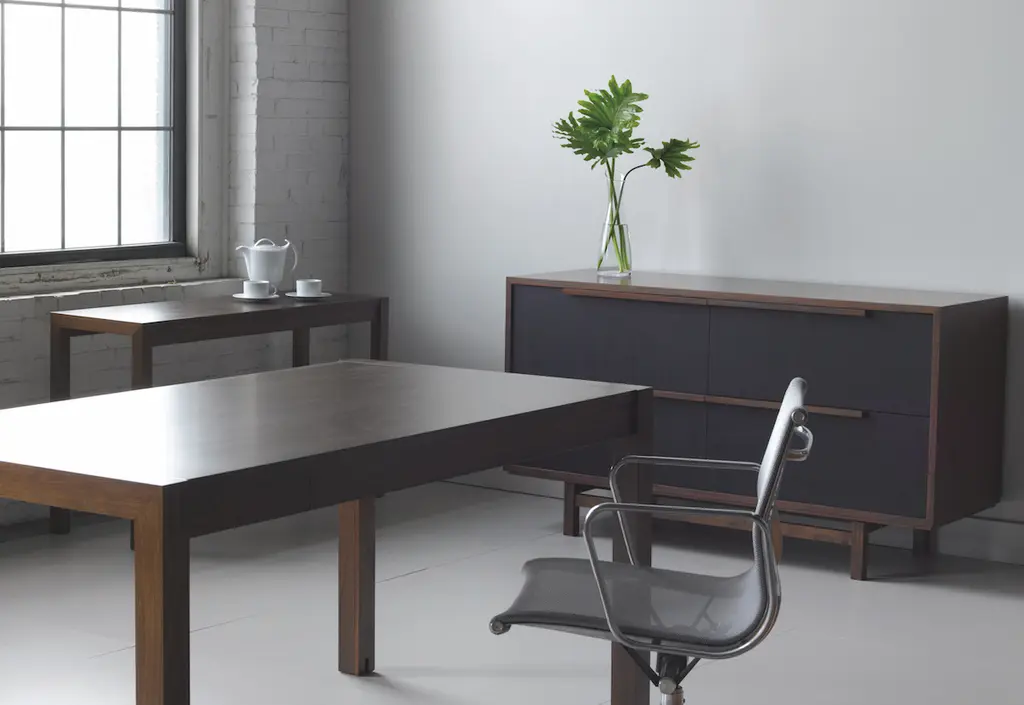 The Element Credenza reflects our devotion to modern design and quality craftsmanship, including clean simple lines and discreet integration of functional components. Paired with an Element Desk, this credenza can serve as a file cabinet return, or, with the optional base, as a standalone feature. The leather-wrapped drawer fronts add a soft touch that complements the clean, sharp angles.