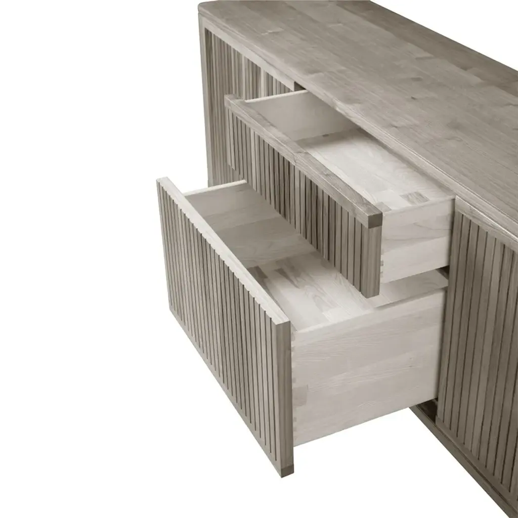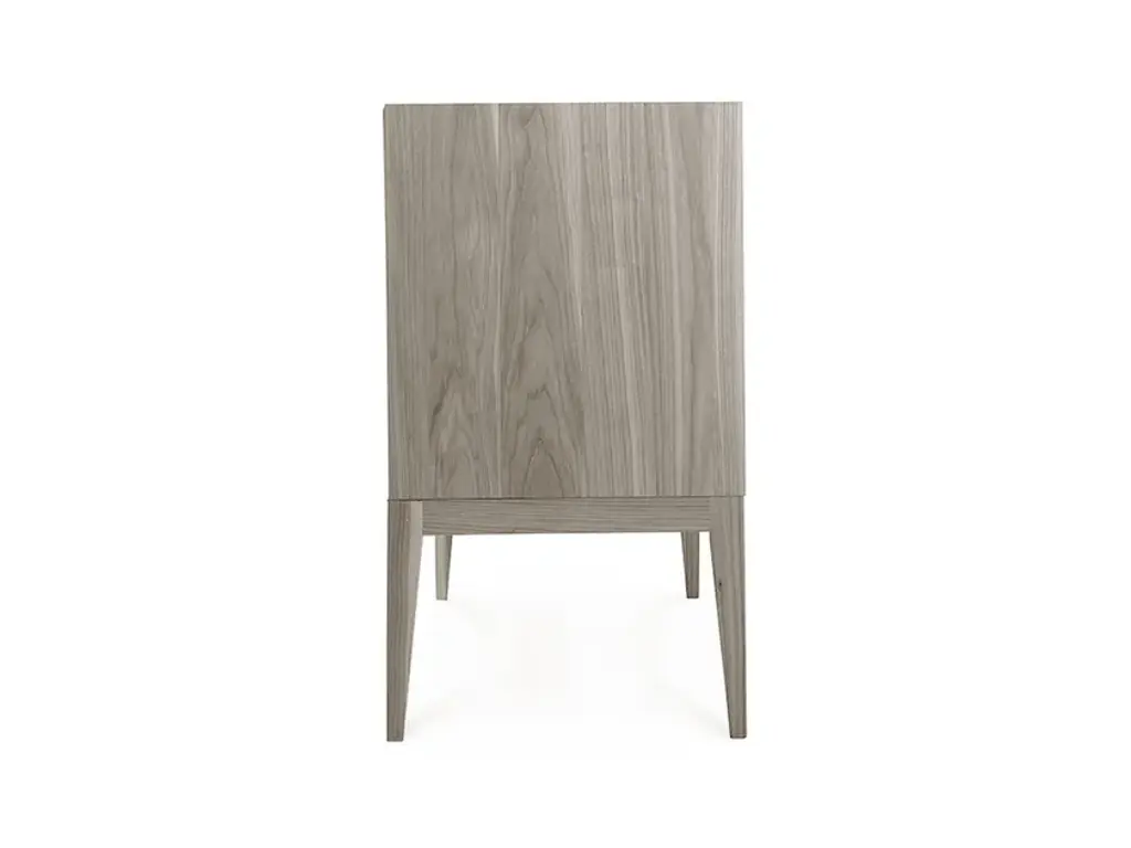 The Eleva solid walnut sideboard combines contemporary style with high quality Made in Italy craftsmanship. The result is a timeless piece, designed complete any space with elegance. Completely hand-finished, it can be customized in size, finishes and details.FrameMade using the traditional technique of working with solid canaletto walnut.Millerighe doorThe same treatment used in for the frame is applied to the creation of the Millerighe doors characterized by elements of slender verticality.DrawersMade entirely of ash wood with dovetail joints