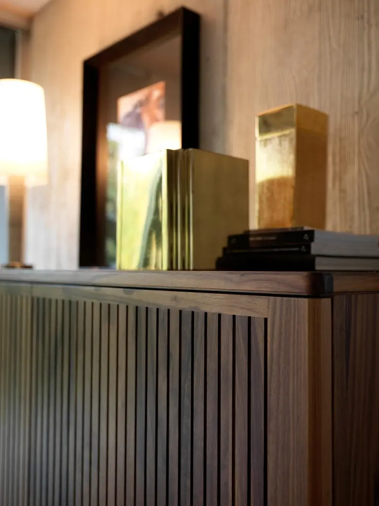 Eleva Sideboard by Dale ItaliaDimensions: D 50 x W 140 x H 160 cm.Materials: Walnut.Frame in walnut veneer blockboard with solid edging. Available in natural or grey walnut finishes and three different size options. Prices may vary. Please contact us.The craftsmanship of the artisanDale Italia's creations result from the great expertise of our team of master craftsmen who have been working with passion and dedication in our company for years. We hand-finish one piece at a time with the utmost care and attention to detail. We customize each piece of furniture according to the individual needs of each project.The raw material, solid wood, is at the heart of our business and becomes the protagonist in every piece of furniture signed by Dale Italia. Furniture is sustained by a thorough knowledge of wood, and the ability to work and interpret it to its full potential. Thus, it is born a long-lived product of strong quality in every detail, enriching life and gratifying the senses, which can lend itself to recycling, reuse, and last for generations, to be lived in and used in today's and tomorrow's homes. We offer a variety of woods such as walnut, oak, and alder, declined in oil or natural finishes, as well as leather and fabrics of Italian origin.