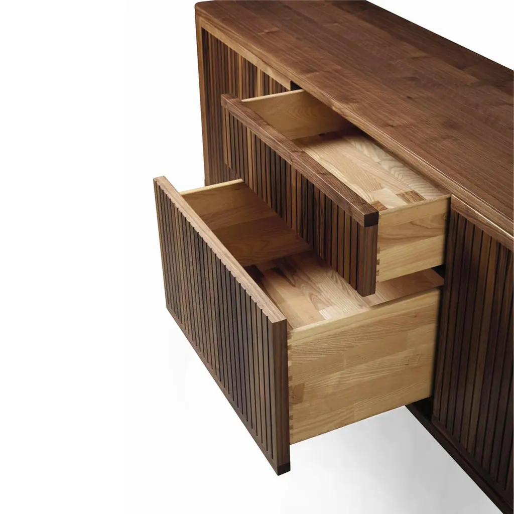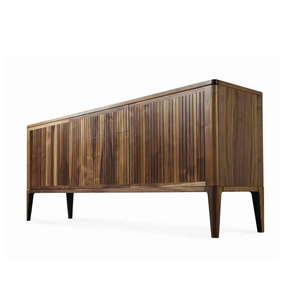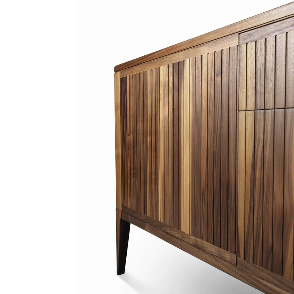 Its simplistic beauty, fine craftsmanship, and exceptional details compose a timeless piece made in Italy by expert hands. The sideboard front presents a linear composition result of our know-how in crafting solid walnut. It comes with two doors and three drawers in a natural oil finish with the internal part with transparent glass shelves. Fully made in Italy, it’s possible to customize it in terms of sizes, finishes, and details to obtain a unique design piece.For customers within the European community: prices will have a 20% surcharge (VAT) to be verified during the negotiation phase.