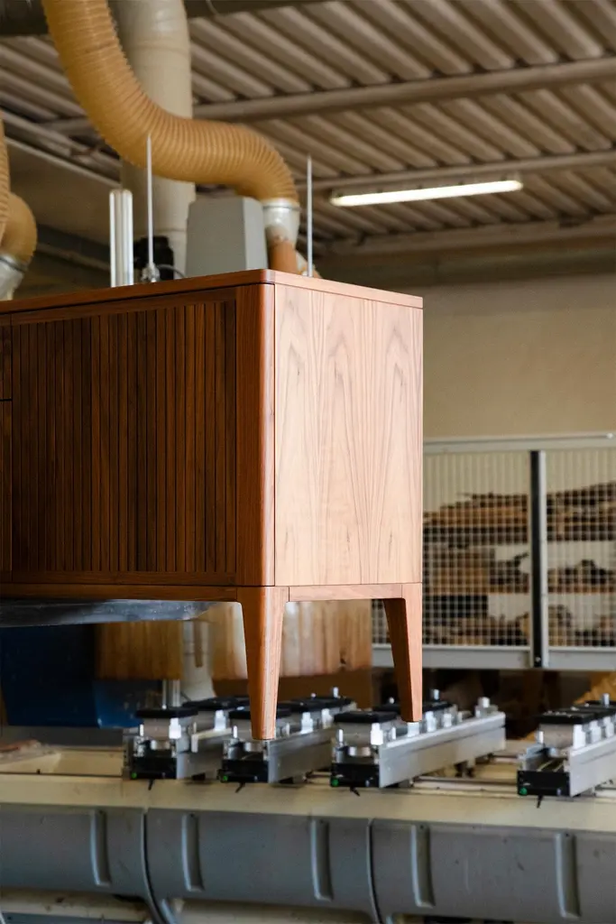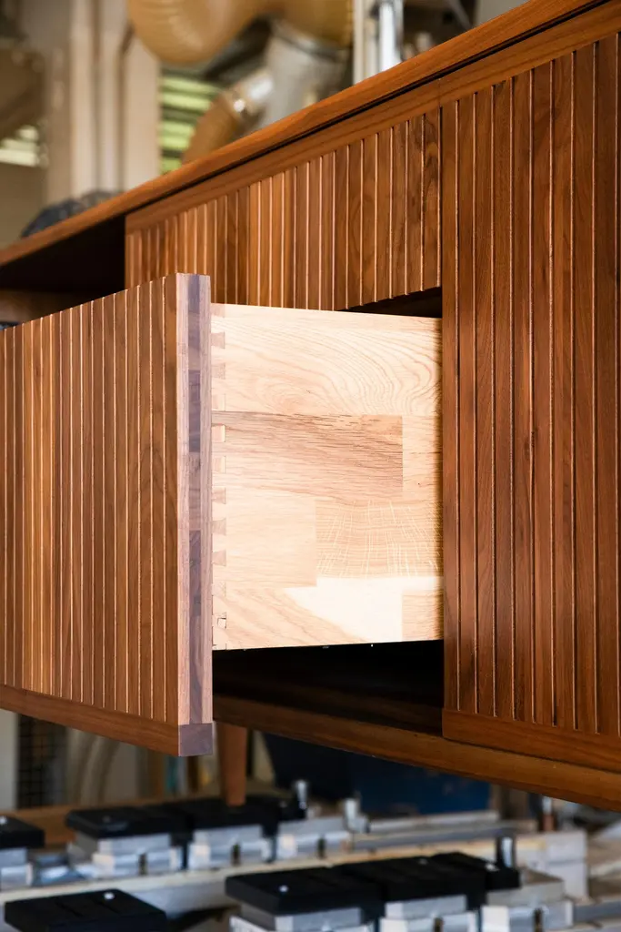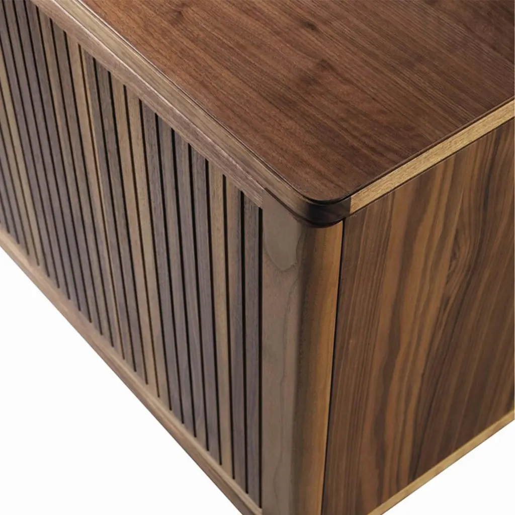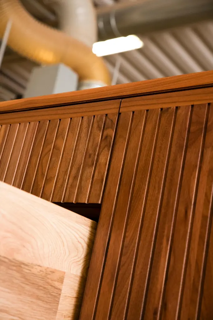 Its simplistic beauty, fine craftsmanship, and exceptional details compose a timeless piece made in Italy by expert hands. The sideboard front presents a linear composition result of our know-how in crafting solid walnut. It comes with two doors and three drawers in a natural oil finish with the internal part with transparent glass shelves. Fully made in Italy, it’s possible to customize it in terms of sizes, finishes, and details to obtain a unique design piece.For customers within the European community: prices will have a 20% surcharge (VAT) to be verified during the negotiation phase.