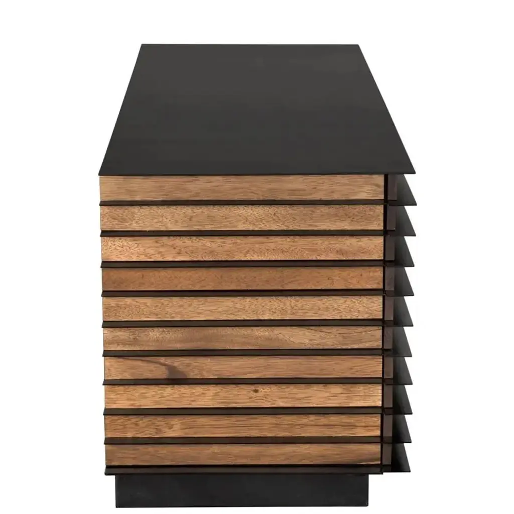 Crafted from rich walnut wood and industrial-grade steel, the Elevation Sideboard marries natural warmth with urban sophistication. Its dark walnut finish exudes timeless elegance, while the matte black steel accents add a contemporary edge, creating a harmonious balance between traditional and modern design elements.