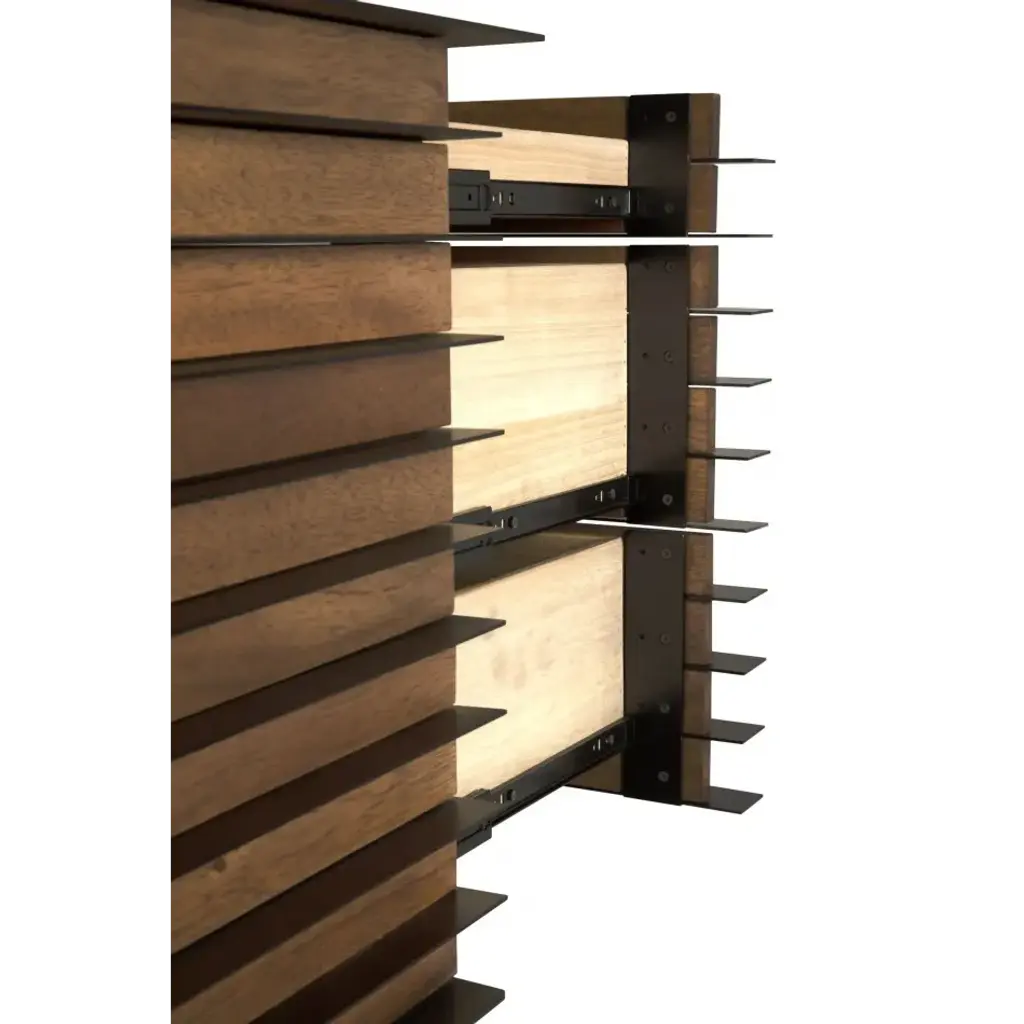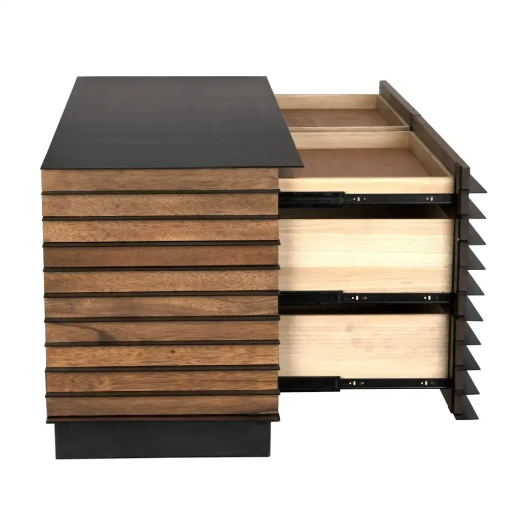 Crafted from rich walnut wood and industrial-grade steel, the Elevation Sideboard marries natural warmth with urban sophistication. Its dark walnut finish exudes timeless elegance, while the matte black steel accents add a contemporary edge, creating a harmonious balance between traditional and modern design elements.