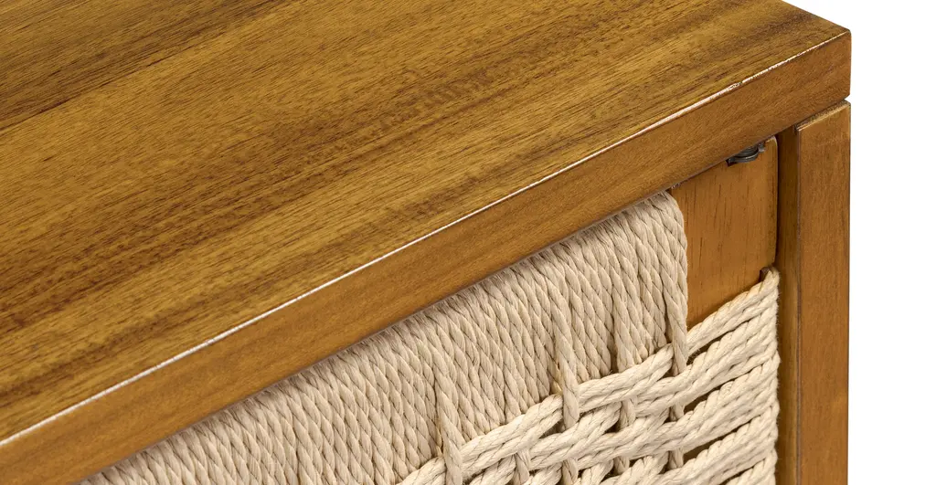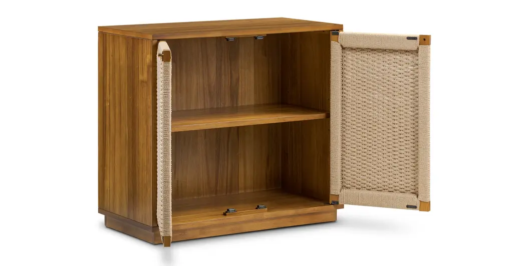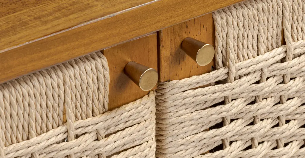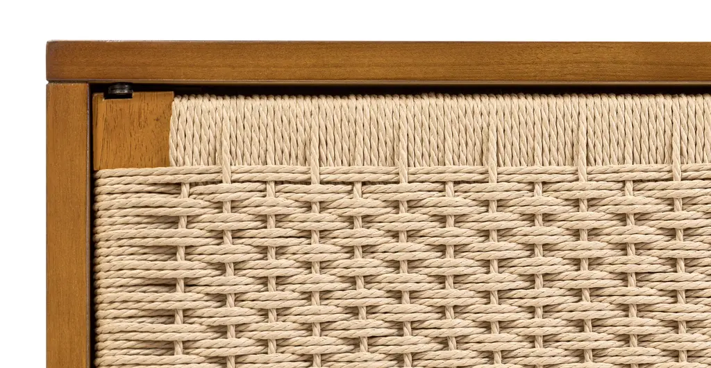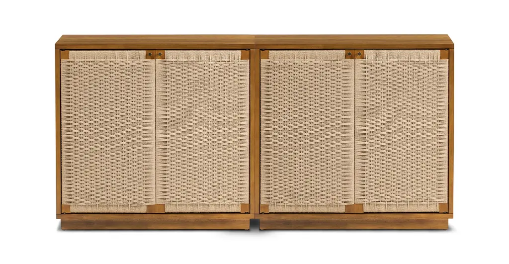 This sideboard is small in size but big on charm. Handwoven Danish cord doors add a coastal touch, while the solid wood and acacia veneer ensure lasting style. Need more storage? Line up a few for a modular masterpiece. With brushed brass handles and adjustable shelves, it’s form, function, and fabulousness all in one.