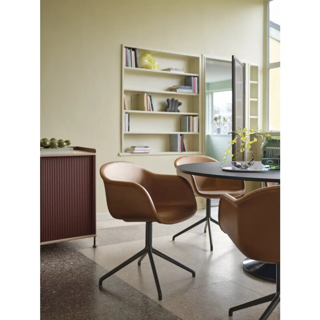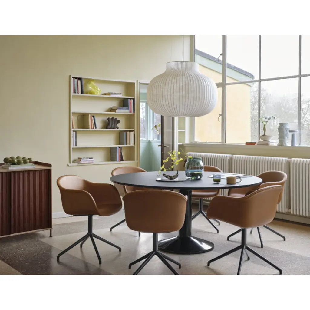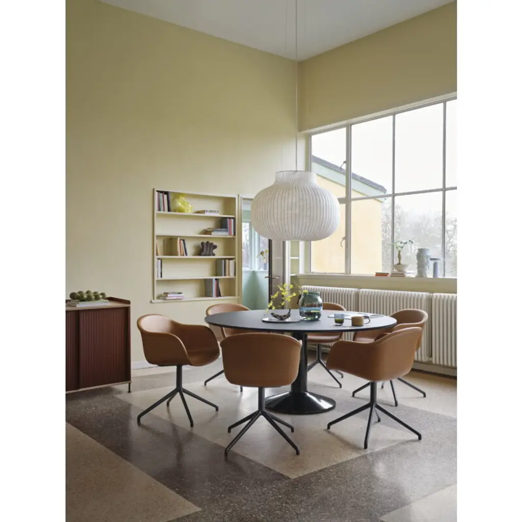Muuto’s Enfold sideboard is characterized by a fine balance of industrial spirit and organic details. Designed by Thomas Bentzen, the Enfold sideboard combines a solid oak base and top with sliding doors made of powder-coated, pleated steel. The lightweight look of Enfold complements both homes and offices and easily finds its place in living rooms, kitchens and hallways alike. Behind the sliding doors of the high, 39.17 in (99,5 cm) wide Enfold sideboard, you’ll find two adjustable shelves and a back panel with a cable opening.