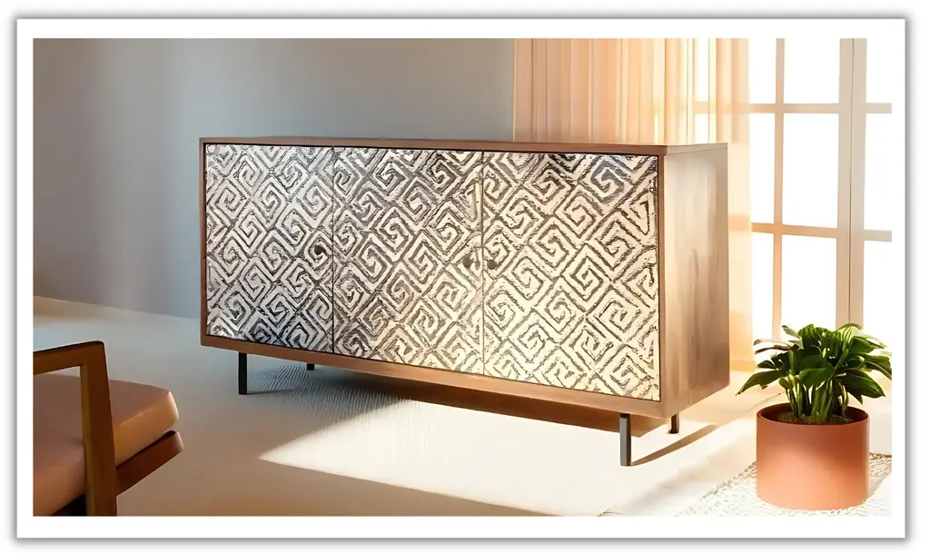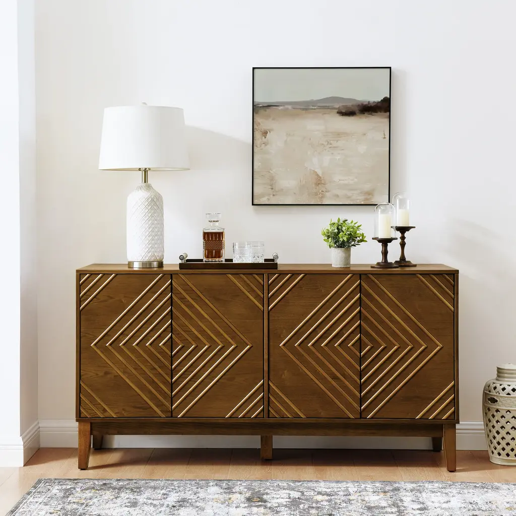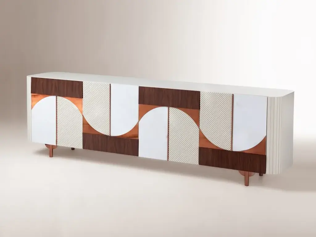 The versatility and almost endless possibilities to combine materials and finishes - from the hues of the glasses to the wide range of wood and lacquer shades – strongly denote this iconic sideboard, which never neglects the formal lines and design balance in all its possible versions. Signed by Maker,Labeled by Maker