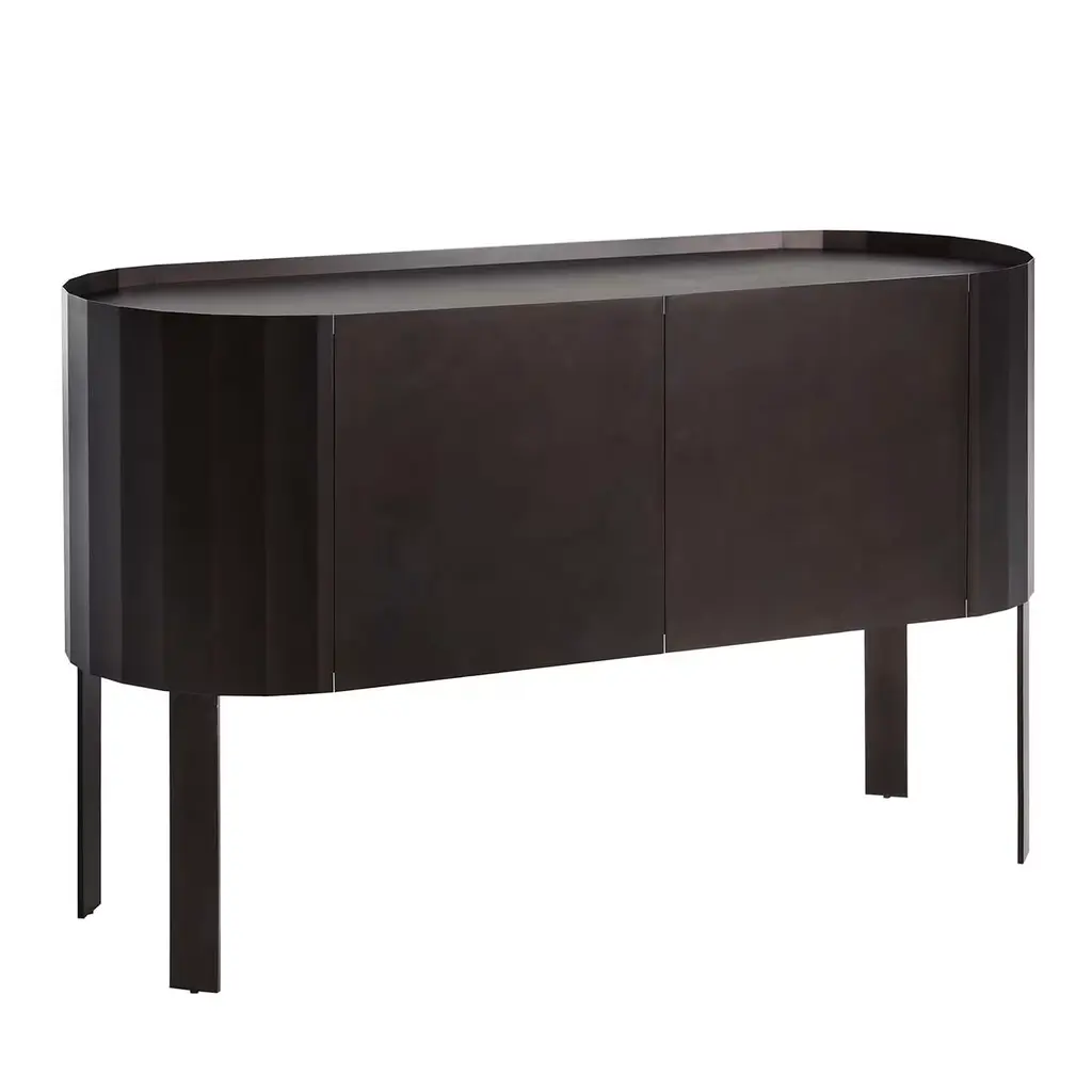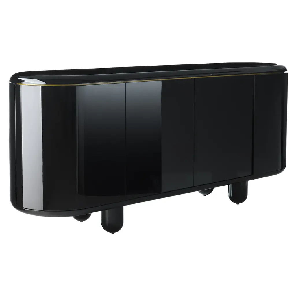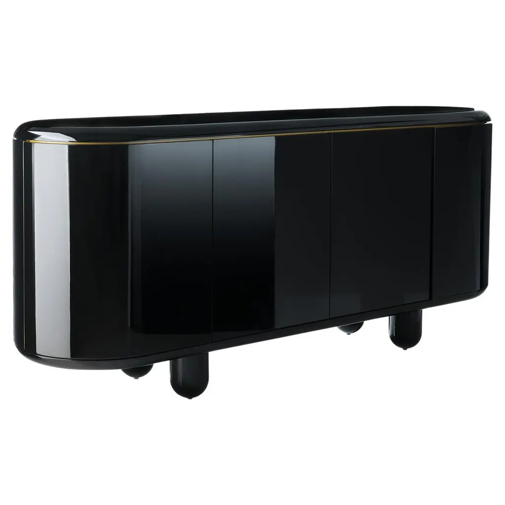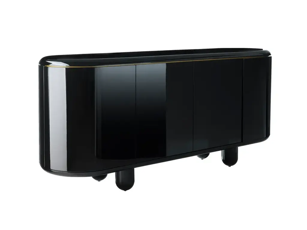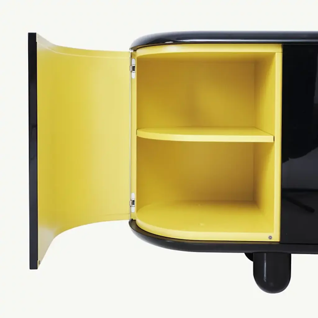 Provide lasting artisanal elegance and storage to interior spaces with the subtle sweep and oval appeal of the Explorer Sideboard from BD Barcelona. An inspired design by Jaime Hayon, it evokes the high-flying curves of Space Age character and features rich Spanish design elements that showcase refined craftsmanship. The legs and base are done in solid alder wood with a gloss finish, with the interiors of each door and drawer done in a contrasting matte texture that invites touch and contrast around an iron frame. The doors open automatically when slight pressure is applied, keeping the contents mysterious and leaving the surface of the sideboard unmarred by pulls or knobs.