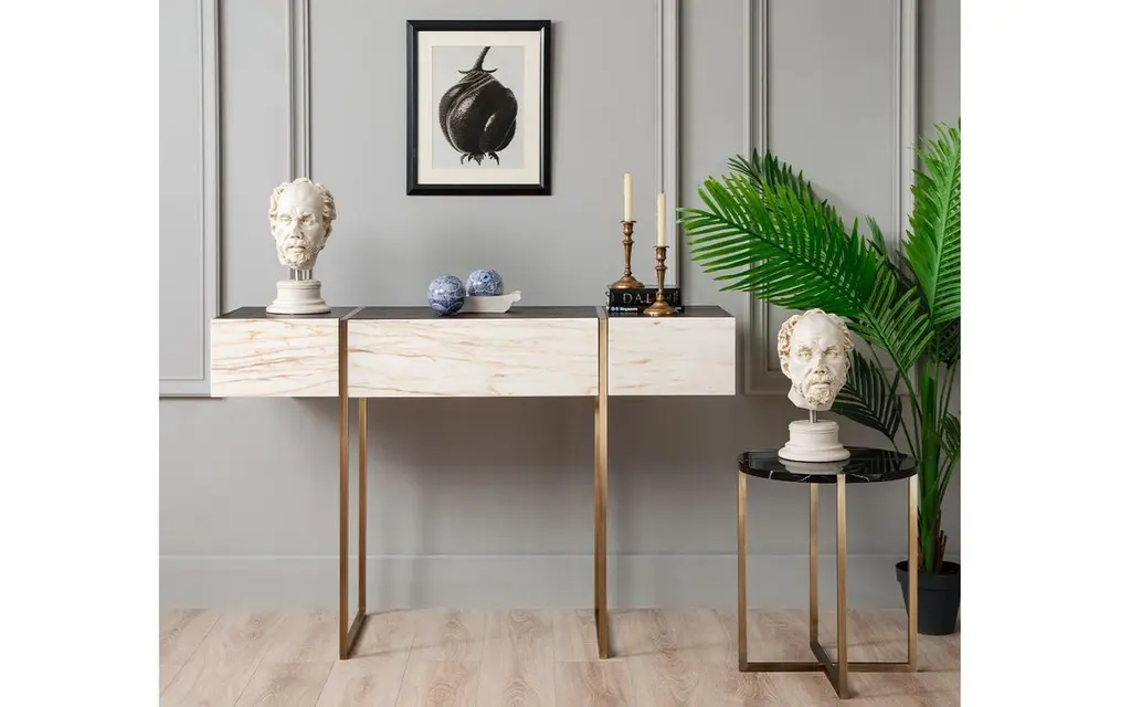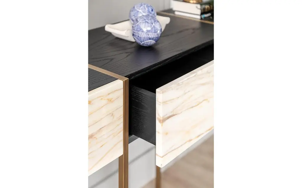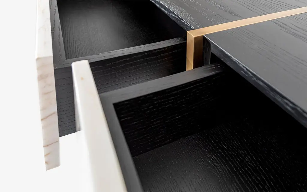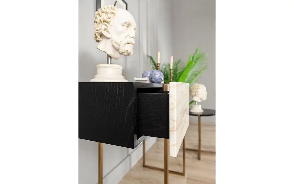 Measures: Length: 56.6'' / Depth: 17.7'' / Height: 35.4''Weight: 60.4 kgThe famed sideboard is a luxurious piece of furniture that exudes sophistication and elegance. It is encased in Calacatta Gold marble, which is known for its stunning veining patterns and luxurious appearance. The brass accents on the sideboard add a touch of warmth and contrast to the cool marble surface.The frame of the sideboard is made from first grade oak plated, which has been plated to give it a smooth and polished finish. The combination of the warm wood and cool marble creates a beautiful contrast that makes the sideboard stand out.The sideboard features three drawers, providing ample storage space for cutlery, table linens, or other dining room essentials. The drawers are likely to have high-quality hardware that makes them easy to open and close.This sideboard is a registered design, meaning that it has been legally protected from being copied or reproduced by other manufacturers. Its simple yet elegant design and high-quality materials make it a coveted piece of furniture that is sure to enhance any dining room or living space.Materials:-First grade oak plated-Calacatta Gold-Brass -Three drawers-Registered designAlternatives:-Light walnut / natural flaxseed oil / black lacquer paint-Brass / matt chrome / black painted metal-Carrara white marble / nero gali marble / olive maron marbleThis item requires mounting to a wall.Customizable. Marble use and careClean surfaces with a slightly damp cloth.Materials have a natural identity; time, ultraviolet light, original character all contribute to the individuality of the piece.Refer to the sales form for care and specification information.Do not use chemical products directly on Lagu products. Some ingredients may cause damage to surfaces.Avoid contact with hot and sharp objects to product surfaces.Please contact us for transportation and surface change decisions.Solid wood and veneer use and careClean surfaces with a slightly damp cloth.Check with your sales consultant about your product’s humidity and ultraviolet light information.Materials have a natural identity; time, ultraviolet light, original character all contribute to the individuality of the piece.Do not use chemical products directly on your Lagu product. Some ingredients may cause damage to surfaces.Avoid contact with hot and sharp objects to product surfaces.