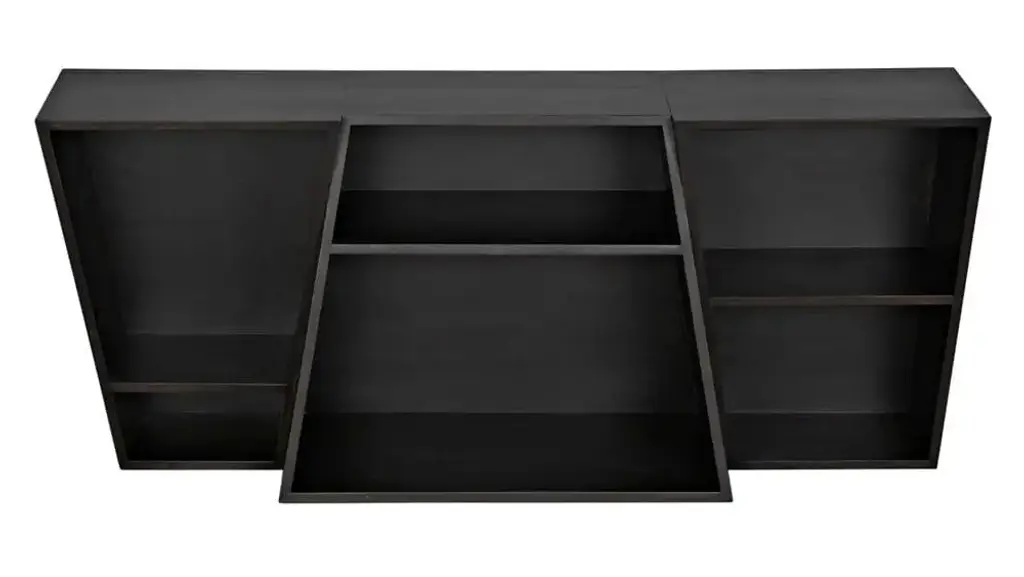 The Fatal Sideboard from Noir showcases simplicity and elegance in one piece. Handcrafted of walnut wood and finished in Ebony Walnut. Its sharp edges and symmetrical features makes this perfect for any room.