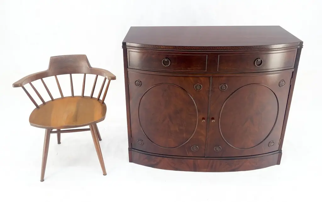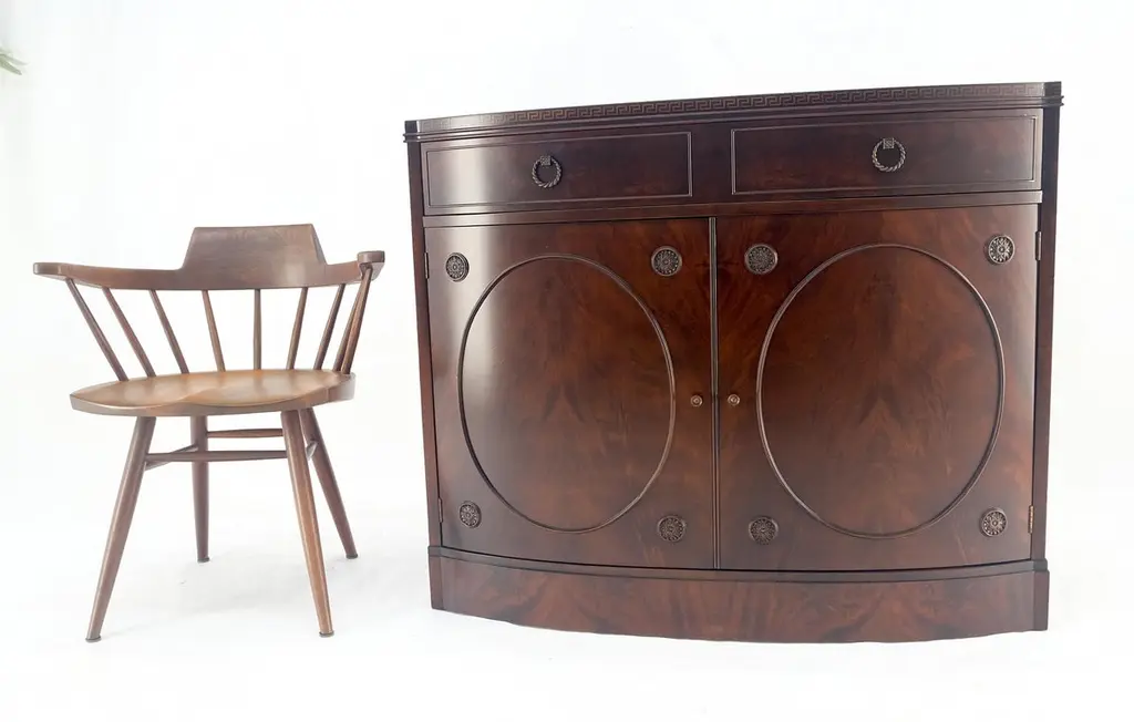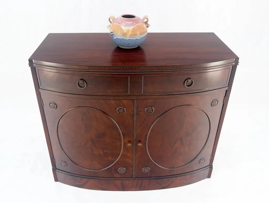 Federal Flame Crotch Mahogany Bow Front Double Door Compartment Sideboard Mint!