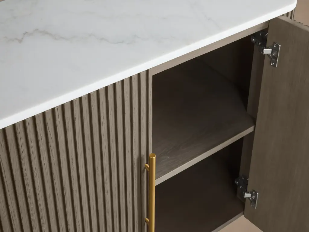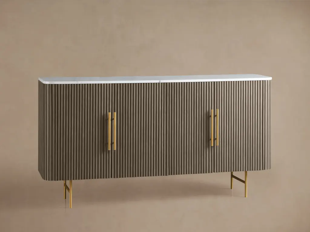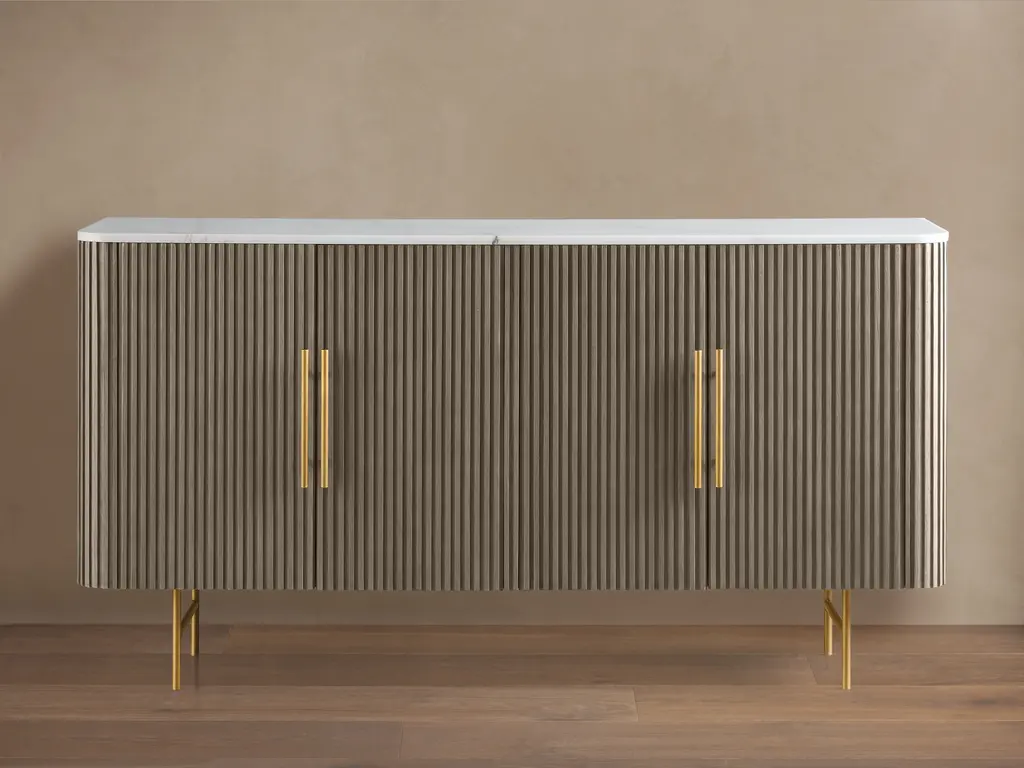 Our Finnley Collection showcases a stunning mixed-material design, inviting elevated style into your dining space. Hand-finished pine from Finland or white oak wood is luxuriously complemented by a stone top, accented by brass hardware and reeded oak detailing. The result is an eclectic-yet-chic collection perfect for gatherings that linger long into the night.