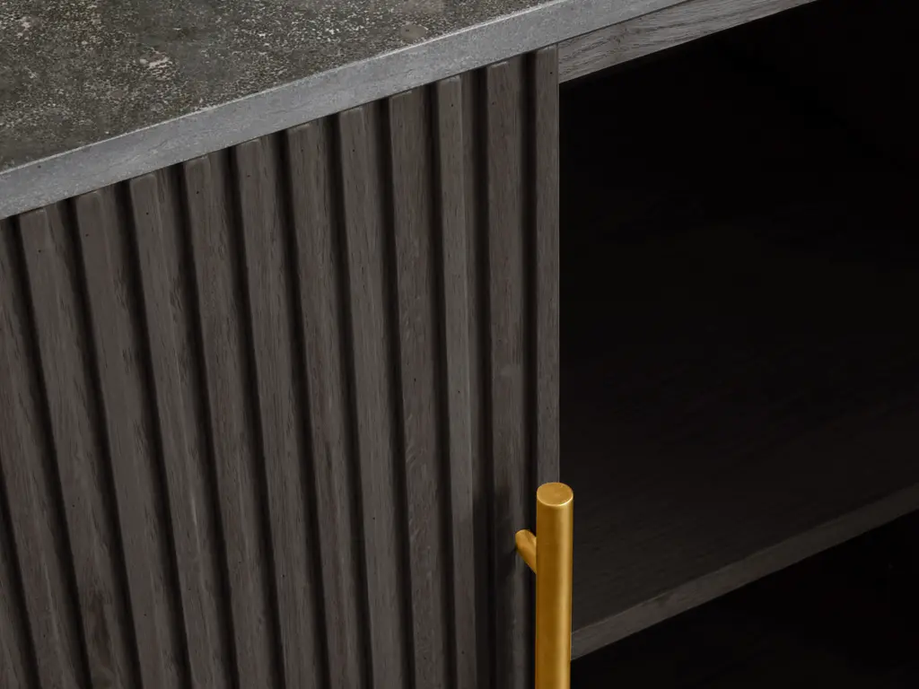 Our Finnley Collection showcases a stunning mixed-material design, inviting elevated style into your dining space. Hand-finished pine from Finland or white oak wood is luxuriously complemented by a stone top, accented by brass hardware and reeded oak detailing. The result is an eclectic-yet-chic collection perfect for gatherings that linger long into the night.