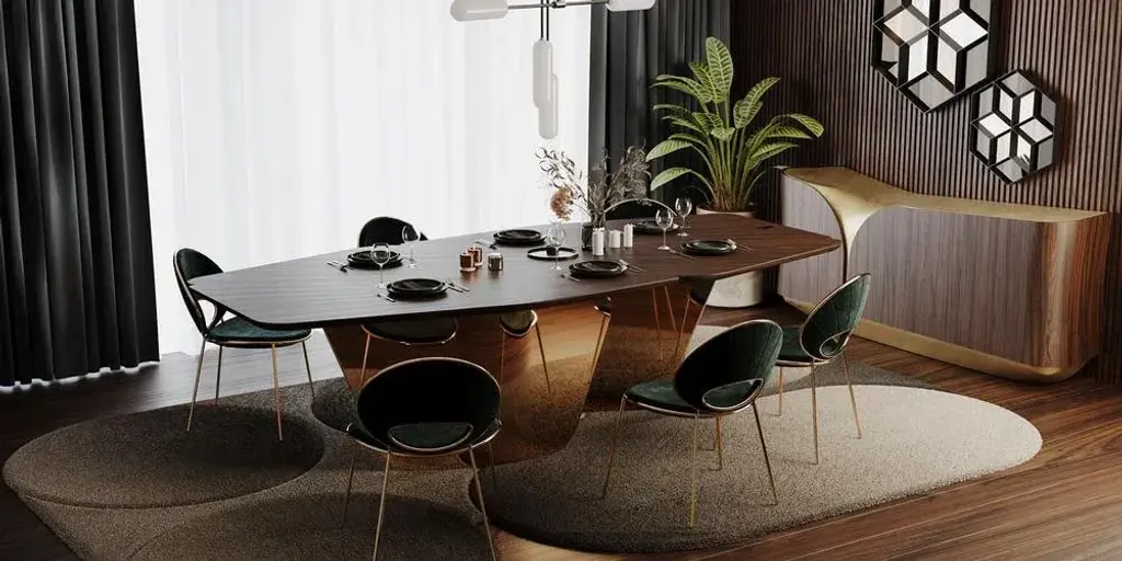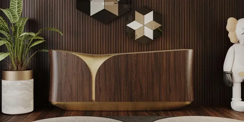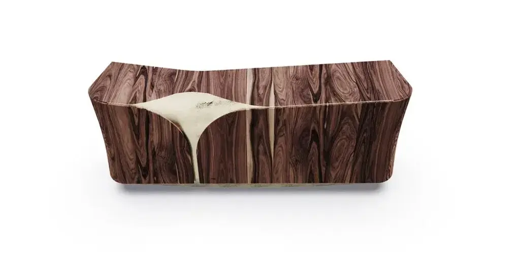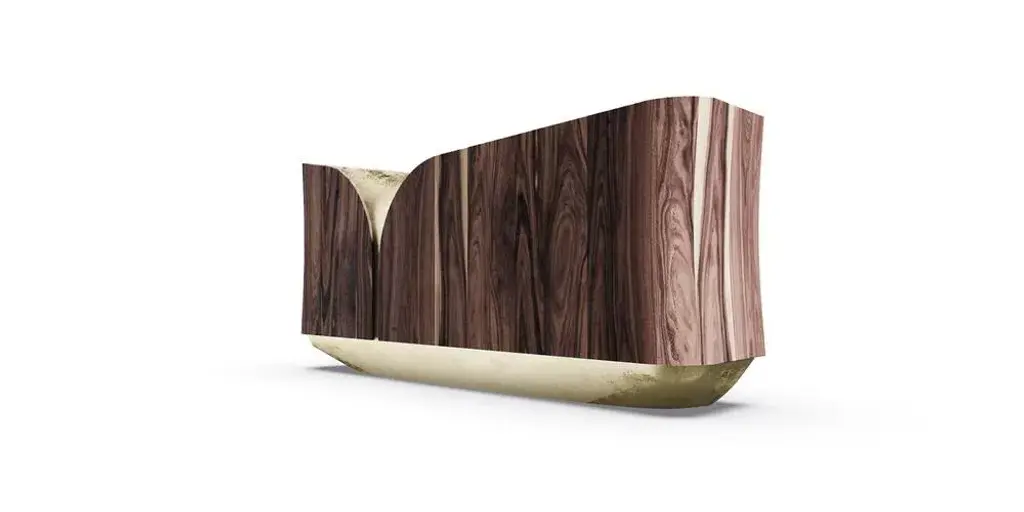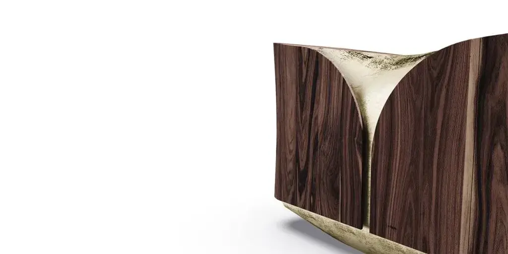 The sideboard FIREFALL was designed to provide an unparalleled experience. This exquisite piece will add a breathtaking touch of elegance and glamour to your luxury Dining room. Exterior in pau ferro veneer with matt varnish finish. Footer & frieze in gold leaf with matt finish. Footer & Frieze: Gold Leaf with matt finish. Drawers, shelves & interior: 3 drawers & 2 shelves coated in Gold Leaf with matt finish. Labeled by Maker