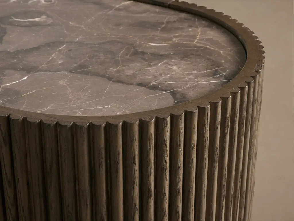 Celebrating craftsmanship with chic style, our Flore Collection’s racetrack silhouette features inset stone tops and gorgeous reeded detailing surrounding the entire piece allowing it to float in any space. Accent your dining room, living space, entryway, home office, and more with Flore’s uniquely crafted curves, soft-close doors housing interior shelving, and elegant mixed-material design available in your choice of two finishes and three stone top options.