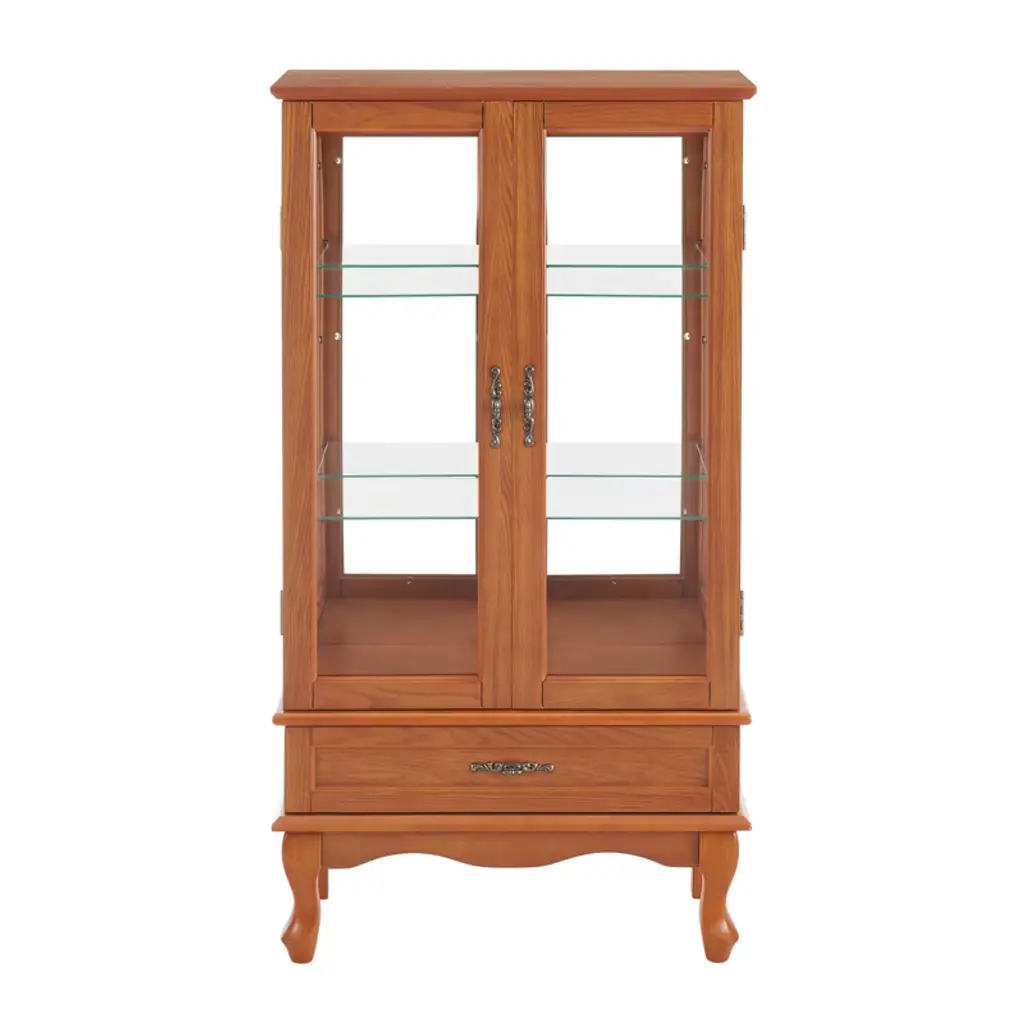 Fontoi Vintage Curio Display Cabinet, Antique Showcase, 2 Doors And 1 Drawer Cabinet Sideboard For Collections,for Office, Cherry,11.81"*51.58"*25.98"