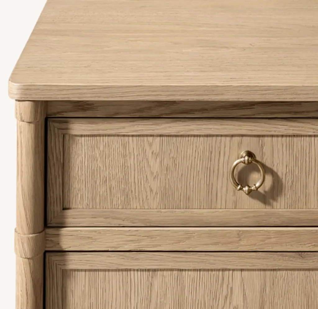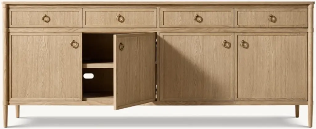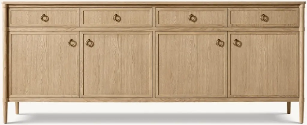 A contemporary take on classic French furnishings of the mid-19th century, the refined François collection is handcrafted from European white oak, wire brushed to reveal the wood's rich grain. The sideboard features recessed panels and looped door and drawer pulls, while rounded, tapered legs soften the clean-lined silhouette.SHOP THE ENTIRE COLLECTION