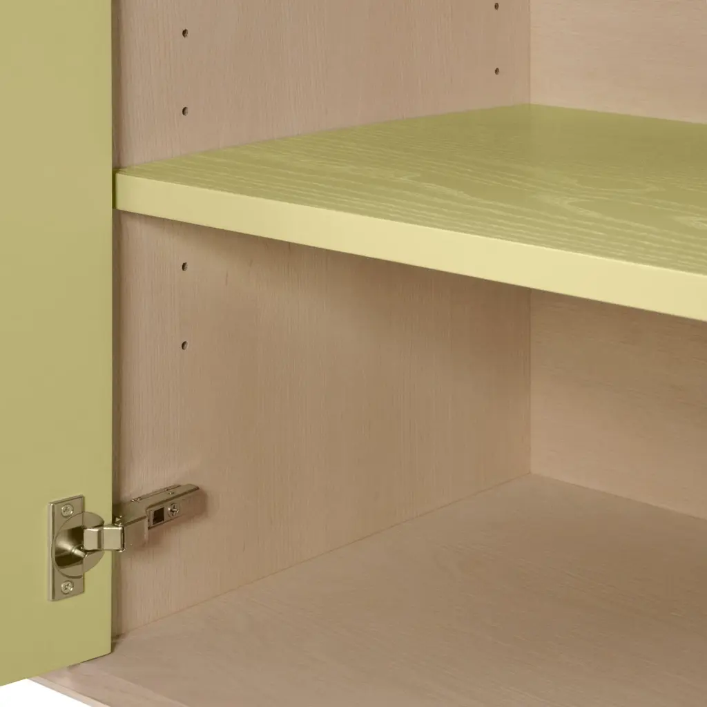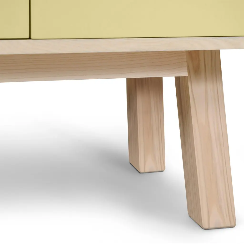 This 2-door, 3-drawer sideboard is presented here in ash wood and also available in French oak.No assembly is required from your side, the furniture is fully mounted in our workshop.The 3 drawers take up half the total length. The drawers fronts are solidly assembled with dovetail joints. The top drawer is lower than the other 2 and features 2 removable interior wooden dividers. The 2 lower drawers are normal drawers without dividers. Behind the 2 hinged doors, 1 height-adjustable shelf on cleats is supplied with the sideboard. To prevent damage during transport, it is positioned at the bottom of the buffet. All you have to do is place it on the cleats (supplied) at the desired height upon reception. Doors and drawers open with a « push & release » pressure on the front.ÉGÉE COLLECTIONThis high & large 2-door 3 -drawer sideboard is part of the ÉGÉE collection, designed by the Parisian designer Eric GIZARD who here adopts the refined codes of Scandinavian design. combining natural materials, elegance and sobriety of lines by adding very beautiful muted and "trendy" colors.Inside the ÉGÉE collection, the KUBE concept is designed to offer an optimized and aesthetically pleasing storage concept.MON PETIT MEUBLE FRANÇAISoffers you 100% French products. The solid wood comes exclusively from sustainably managed French forests.The manufacture and finishes are of very high quality, carried out in French workshops in Mayenne, France.
